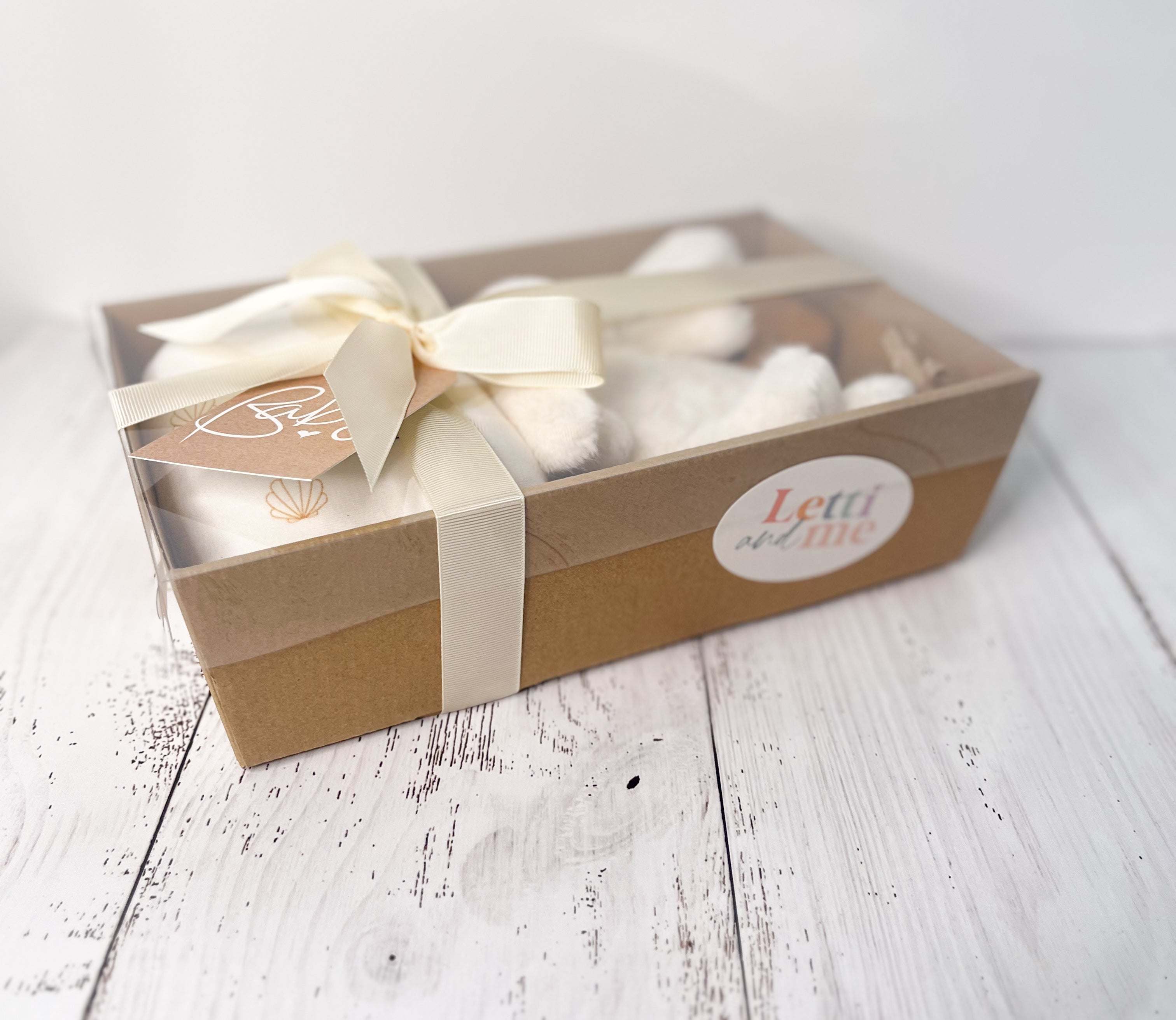 Letti & Me pre made baby gift boxes are the perfect bundle of curated pieces, packaged beautifully together with a gift tag that can be left blank for you to write a special message on or leave a message in the notes section at checkout for us to fill this in for you.