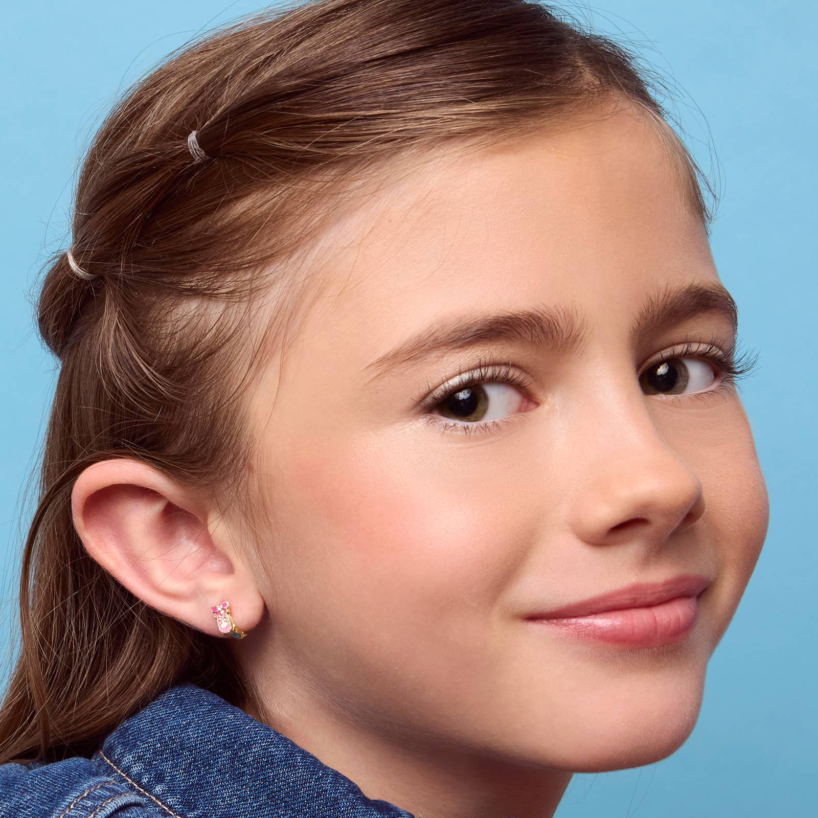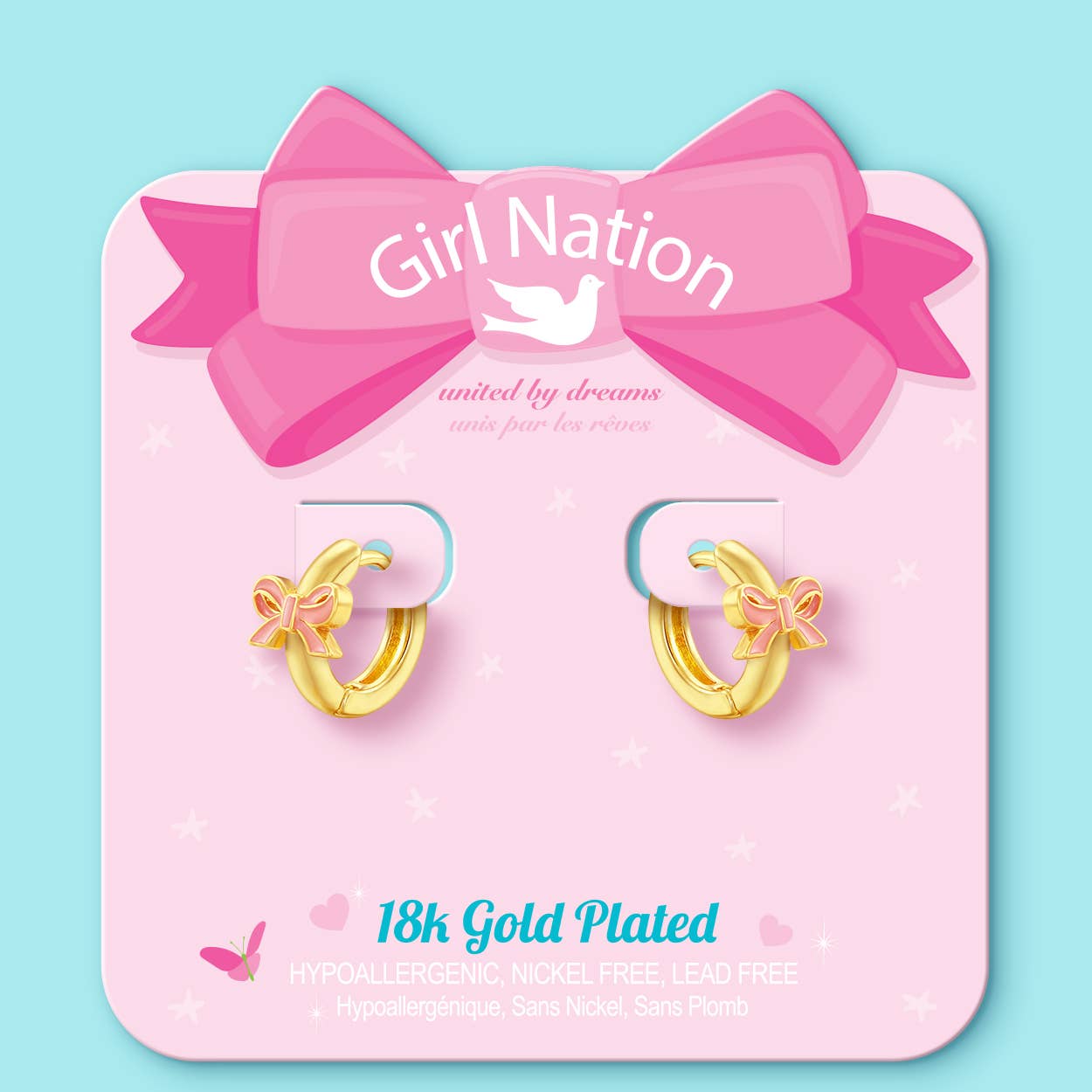 Pink Bow Earlets | 18K Gold Plated Girls Huggie Earrings