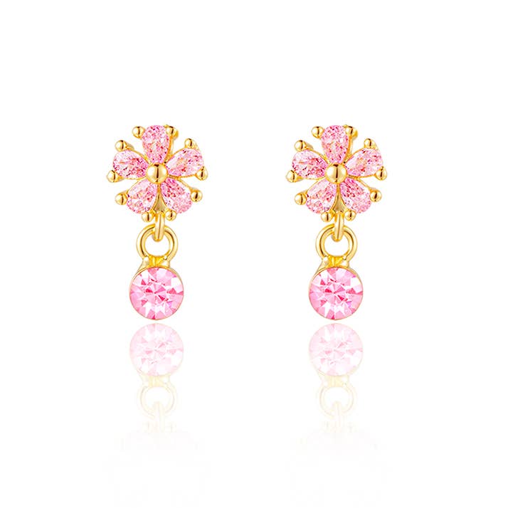 Little Luxe Drop Earrings | Flower with Pink Cubic Zirconia