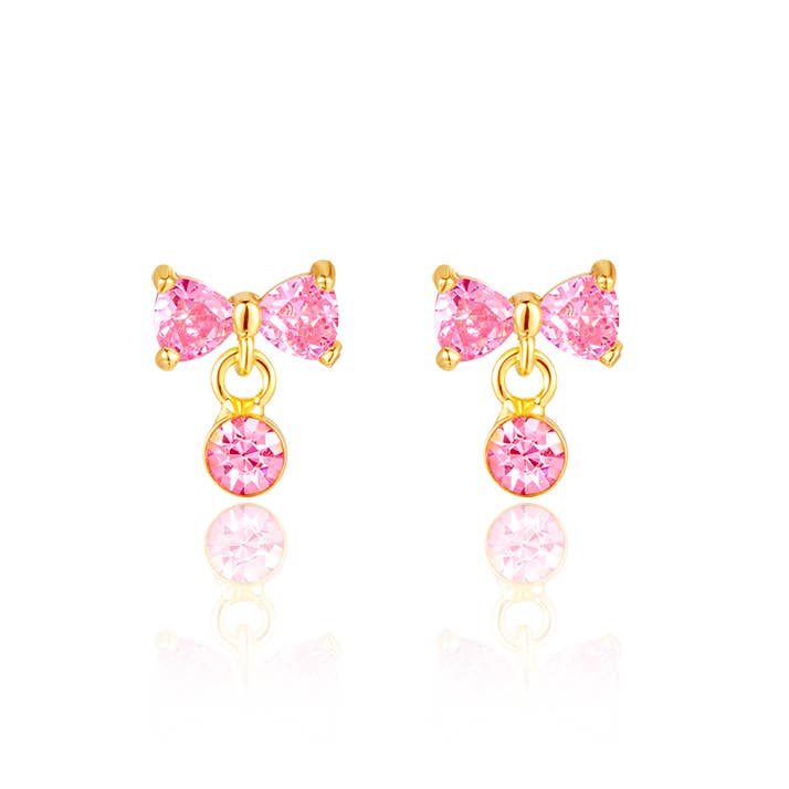 Little Luxe Drop Earrings | Bow with Pink Cubic Zirconia