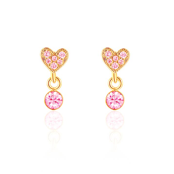 Little Luxe Drop Earrings | Heart with Pink Cubic Zirconia