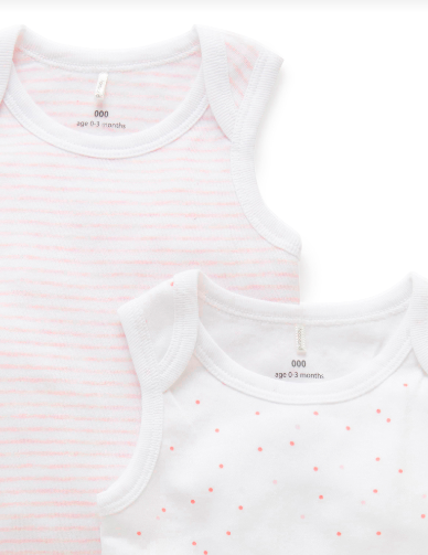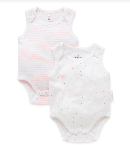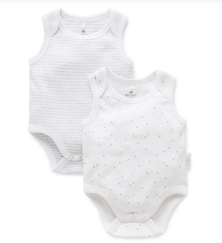 Our functional and practical 2 Pack Singlet Bodysuit is a must-have for all year round layering. The all in one style ensures their torso stays covered and warm, while the snap clips at the nappy and envelope neckline allow for easy dressing. Made from the softest certified 100% Organic Cotton making the bodysuit gentle and breathable on the skin. This essential style can be worn during all seasons as an individual piece or layered under cardigans and pants. 2 pack Snap clips at the nappy Envelope neckline for easy dressing Made from 100% Certified Organic Cotton