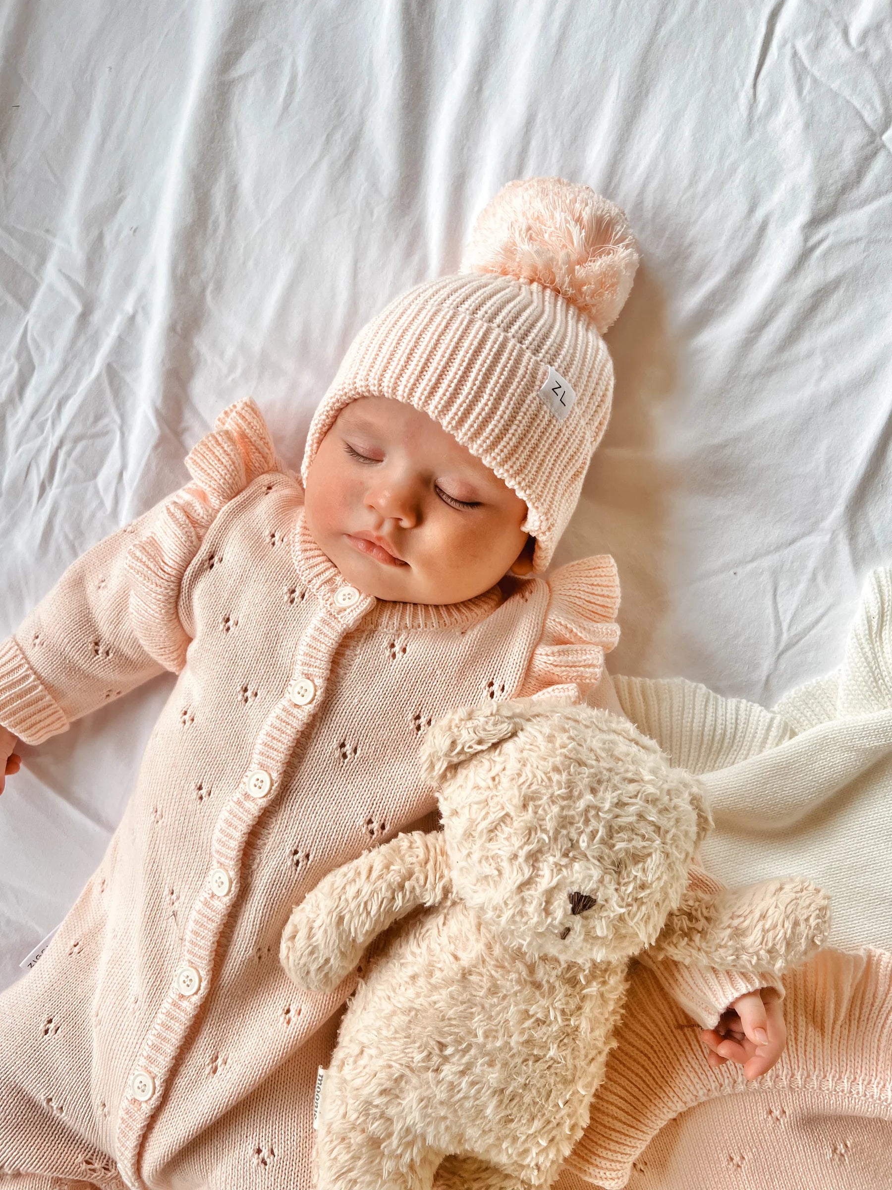 Safety | Never leave baby unattended with beanie on. Remove beanie before sleeping.