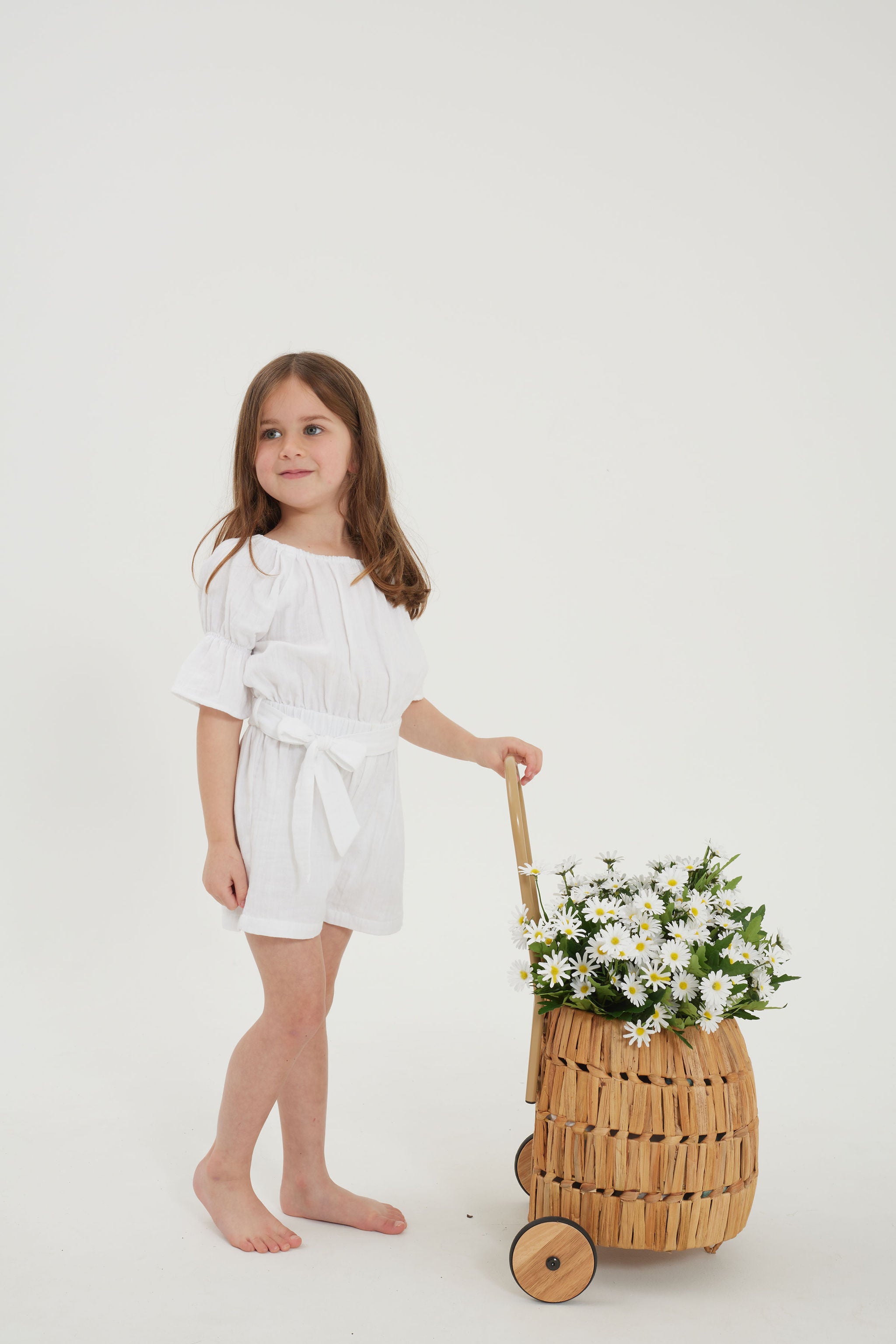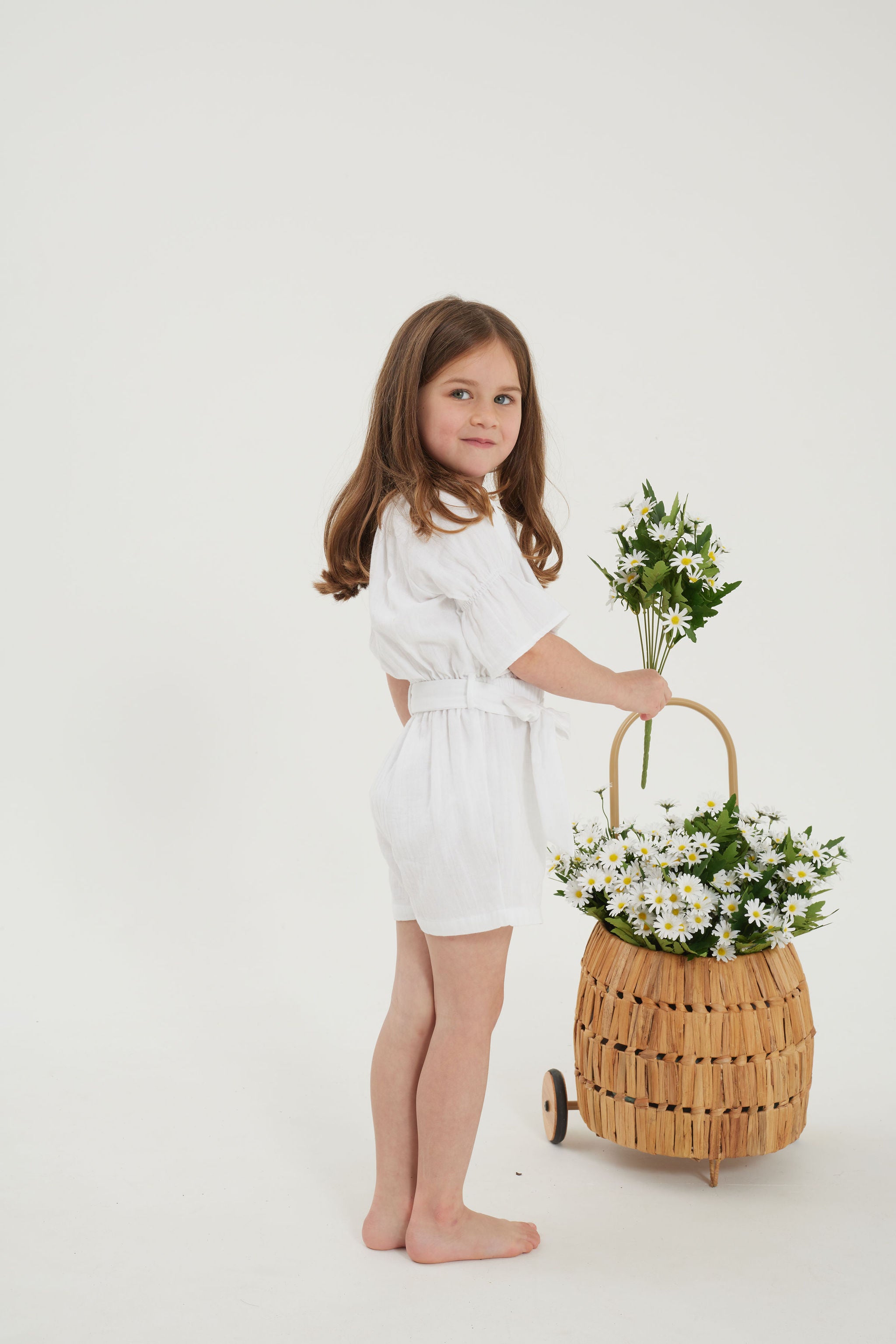 Super stylish with gathering on the waist and self Fabric Ribbon to tie back.