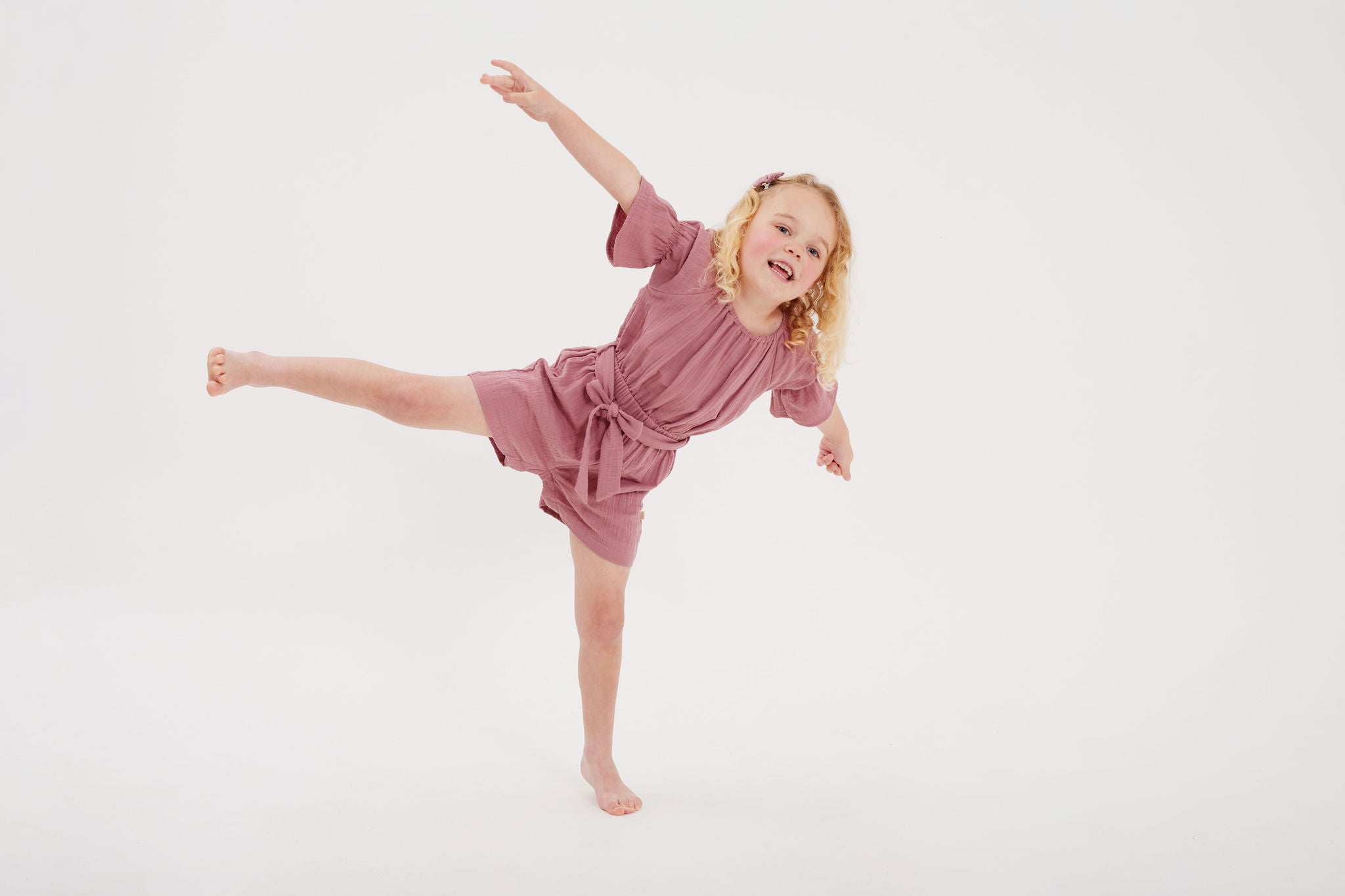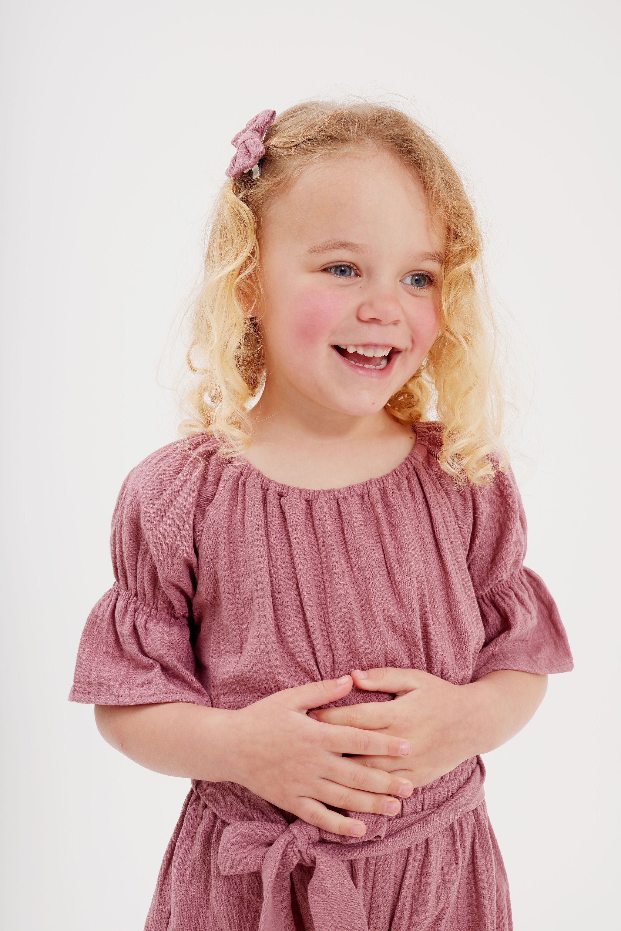 Super stylish with gathering on the waist and self Fabric Ribbon to tie back.