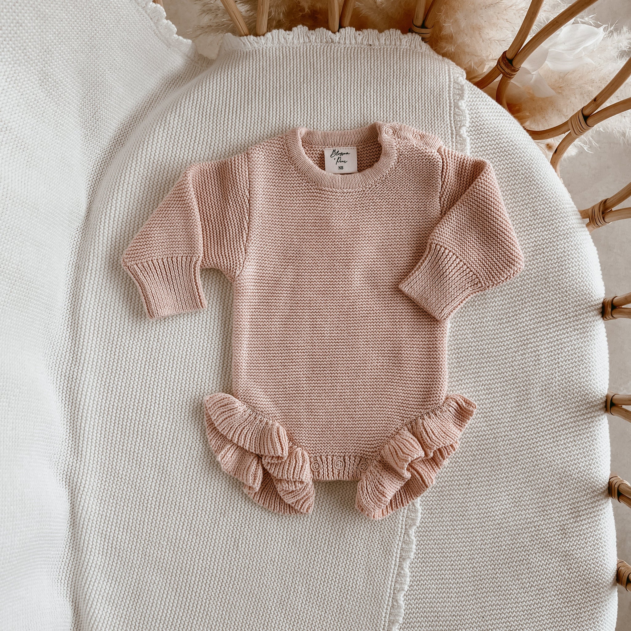 Our beautiful cosy Long Sleeve Frill Leg Knit Romper is the perfect piece for your littlest love.