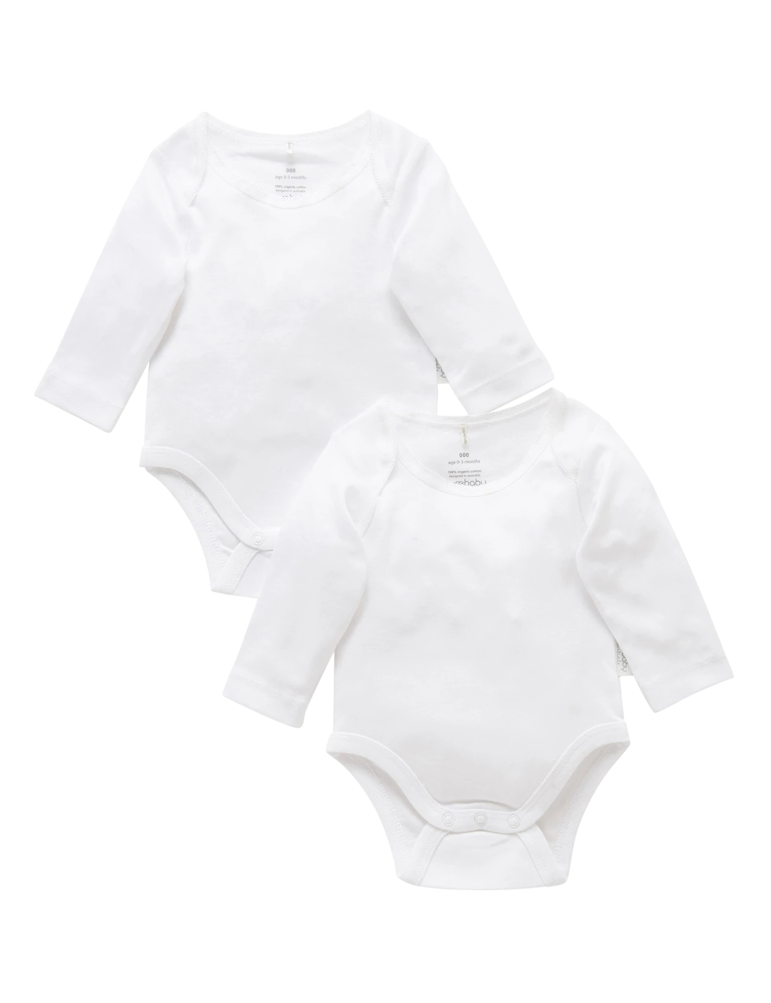Purebaby | 2 Pack Easy Neck Long Sleeve Bodysuit