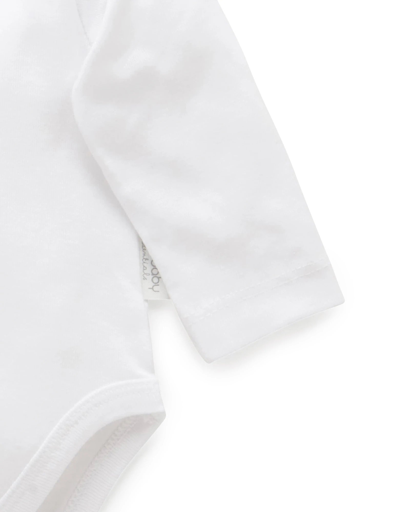 Convenient pack of two soft ribbed long sleeve bodysuits in the Essentials collection with snap buttons at the nappy for easy dressing. An essential style for newborns, the all in one style ensures the torso stays covered and warm. Made from our 100% Certified Organic Cotton making the bodysuit gentle and breathable on the skin.