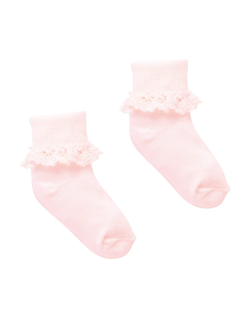 Purebaby Essentials Lace Sock are a sweet addition to her wardrobe to keep the feet all warm and snug. Featuring soft ribbed opening and lace ruffle detail.