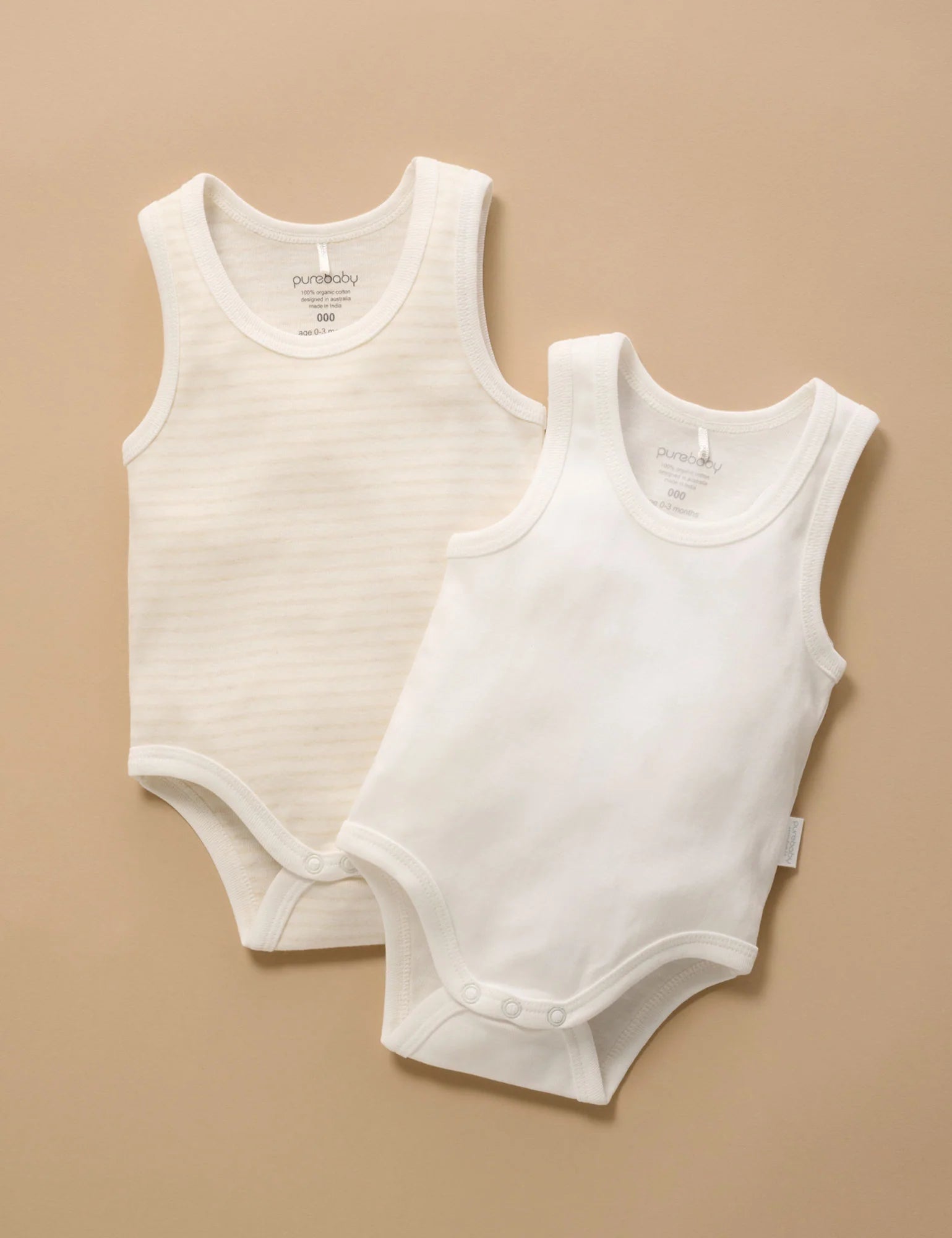 This Essentials two pack rib singlet bodysuit for practical all year round layering.