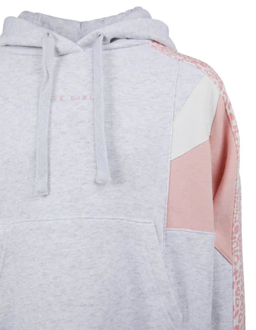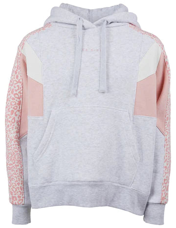 The Base Hoody is made from Cotton/Polyester fleece and features an all over garment wash for soft handfeel. The hoody is in a regular shape and features a small front chest raised rubber print, kangaroo pocket and contrast pink and white panels. The hood is made from self fabric with a lace drawcord. The cuffs and hem are both finished with 2x2 rib for stretch and comfort.