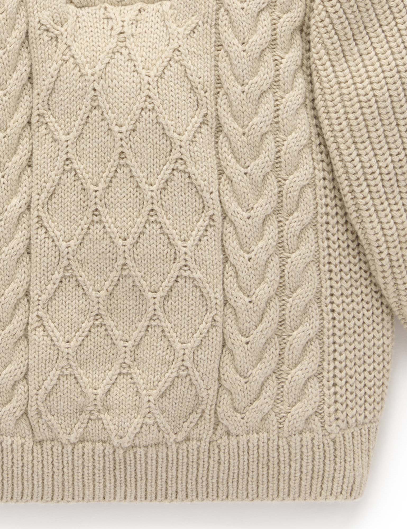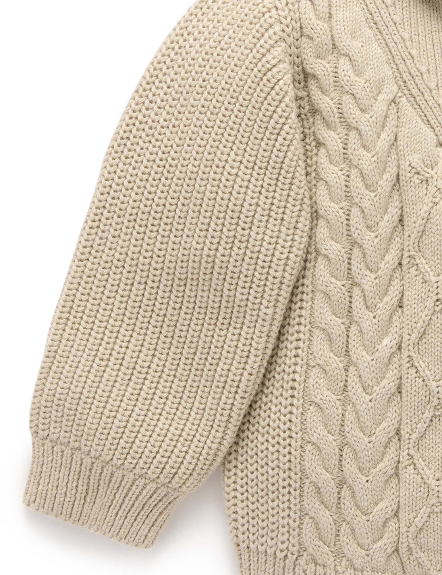 Our Cable Knit Jumper is a classic winter style that will keep your little one warm during cooler months. Lovely and soft, made from our organic cotton and wool blend yarn in a cable stitch. Layer over a basic tee and pair with our chinos or corduroy lined pants for a dressy look or throw on with a pair of track pants for a casual outfit.