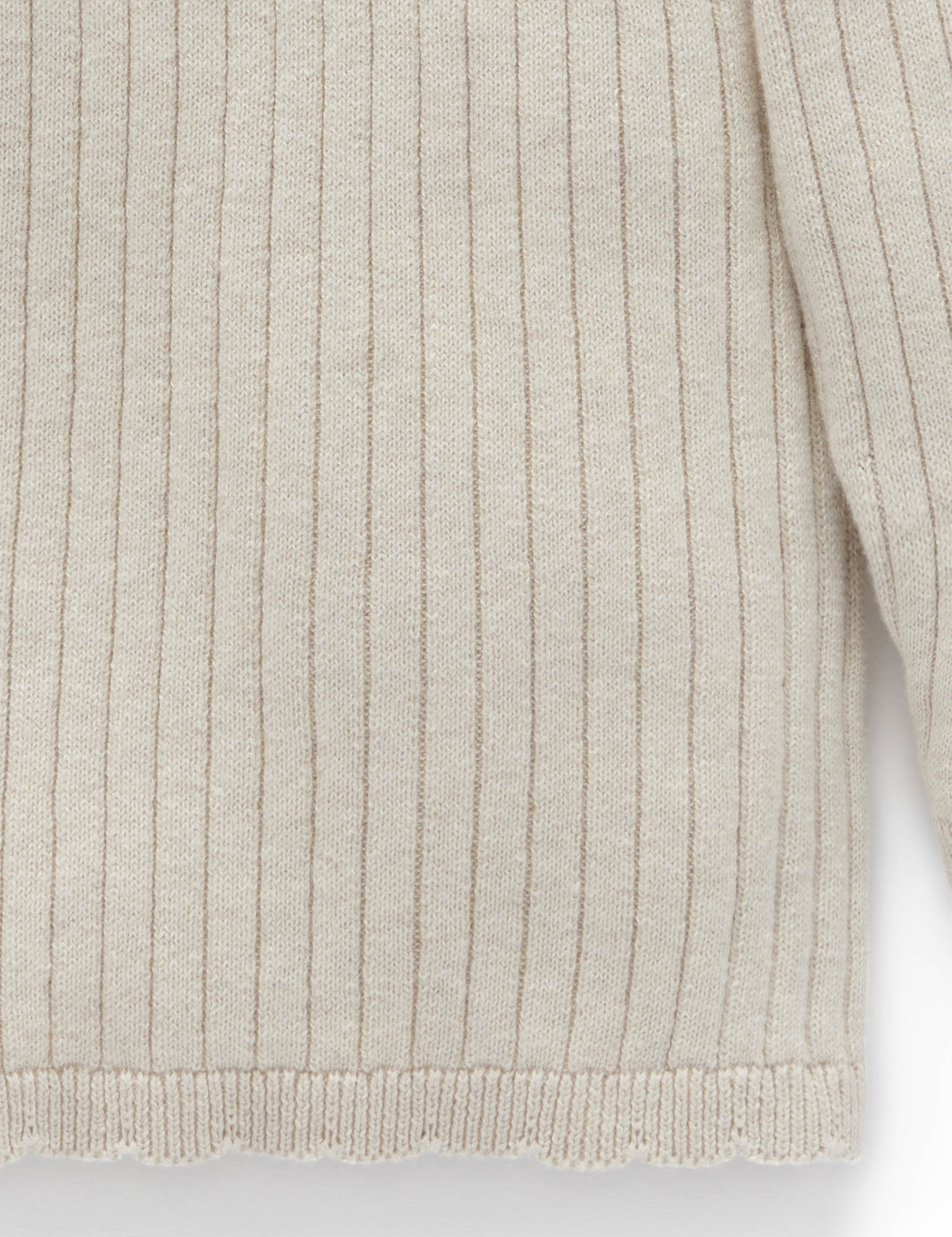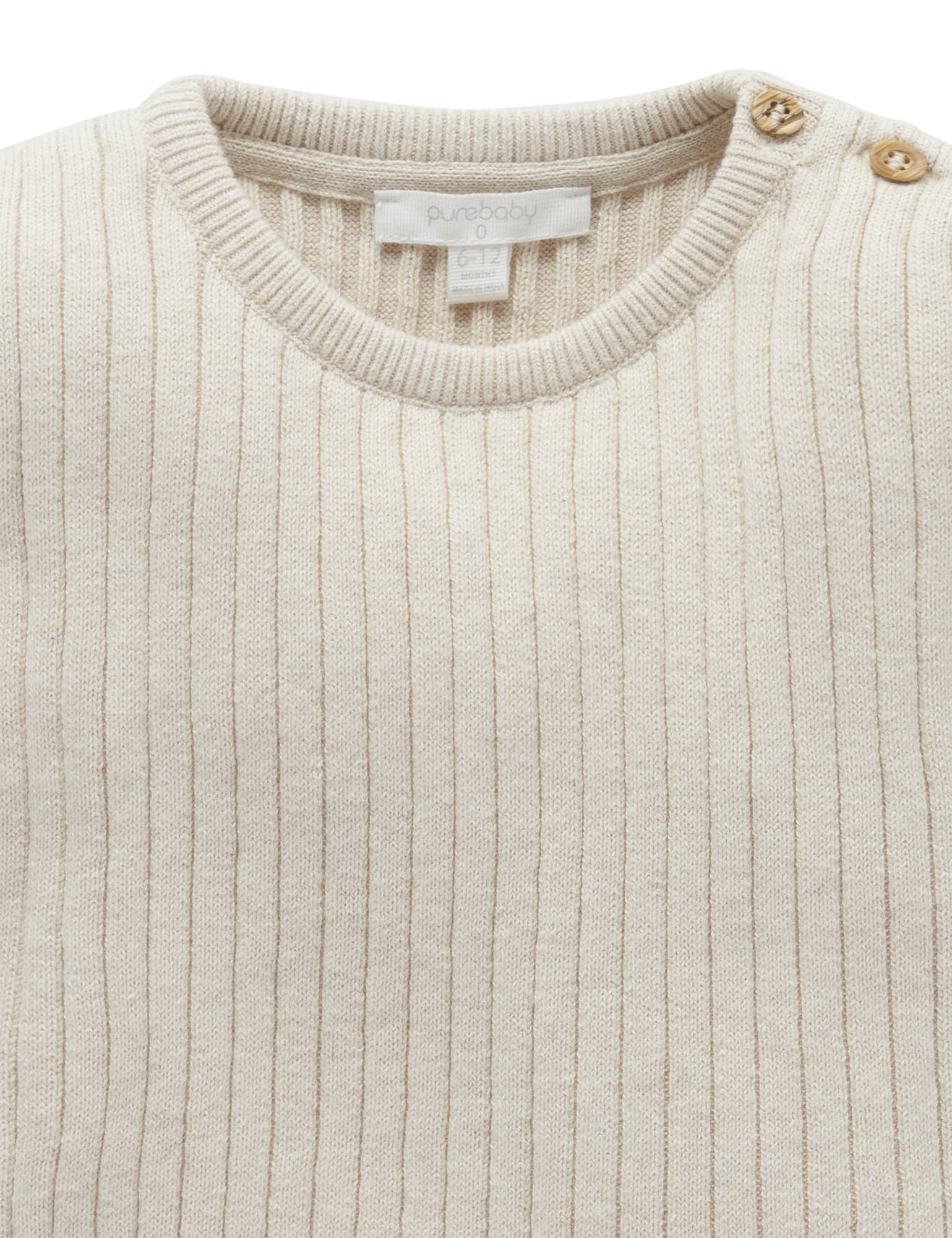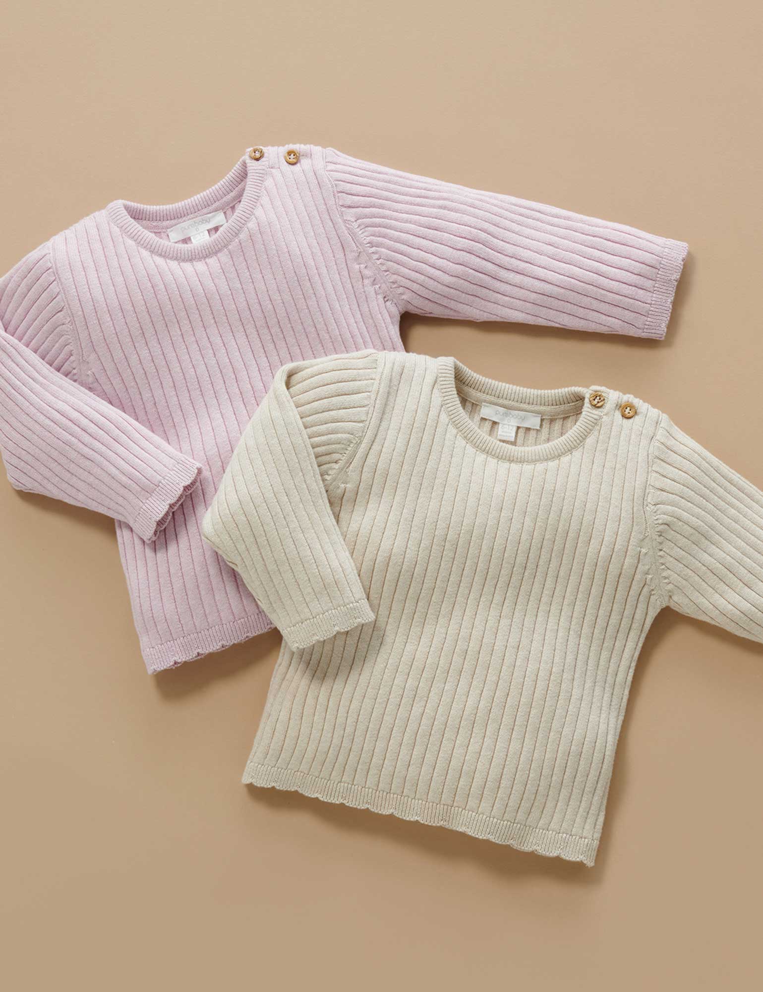 Our Fine Rib Jumper is a classic, simple style that's great worn on it's own or layered underneath outerwear. Knitted in a light rib stitch, this is a close fitting style to keep little bodies warm. Made in soft organic cotton yarn with a touch of wool, this is a comfortable jumper that won't itch.