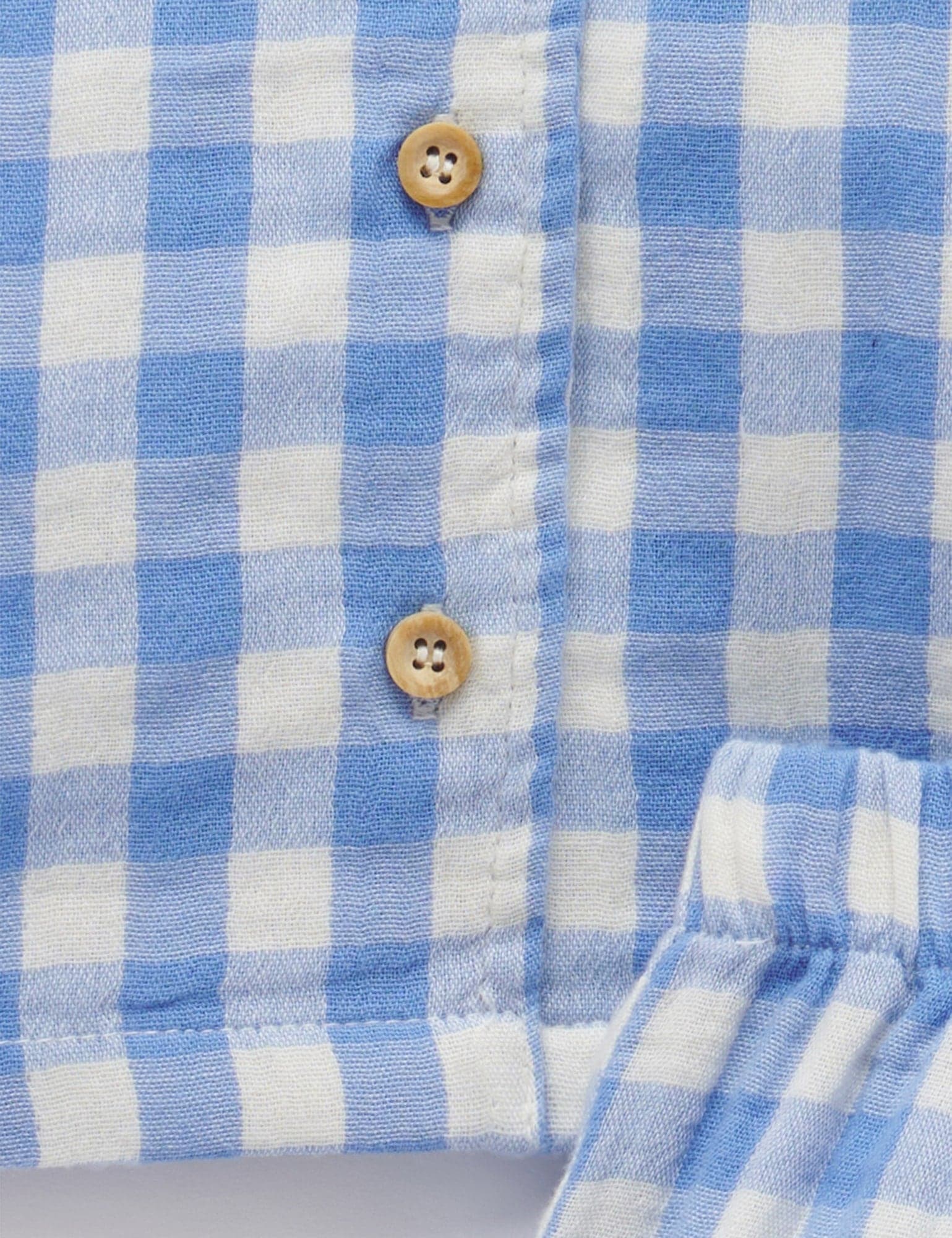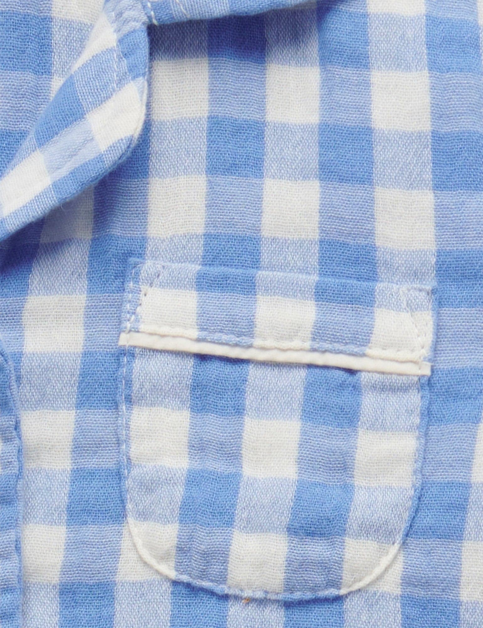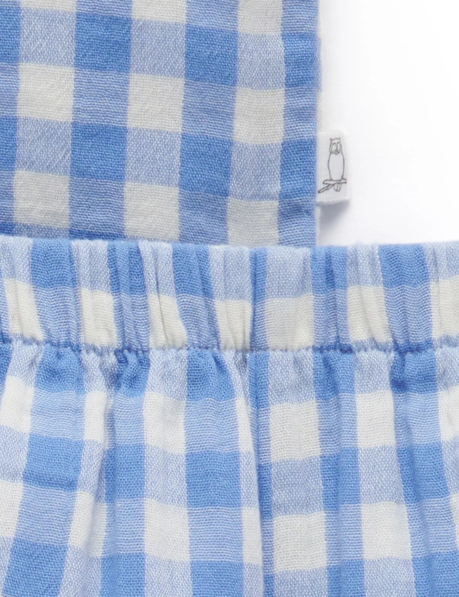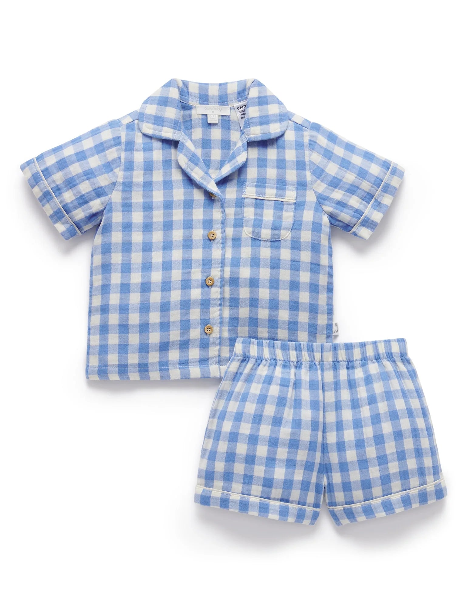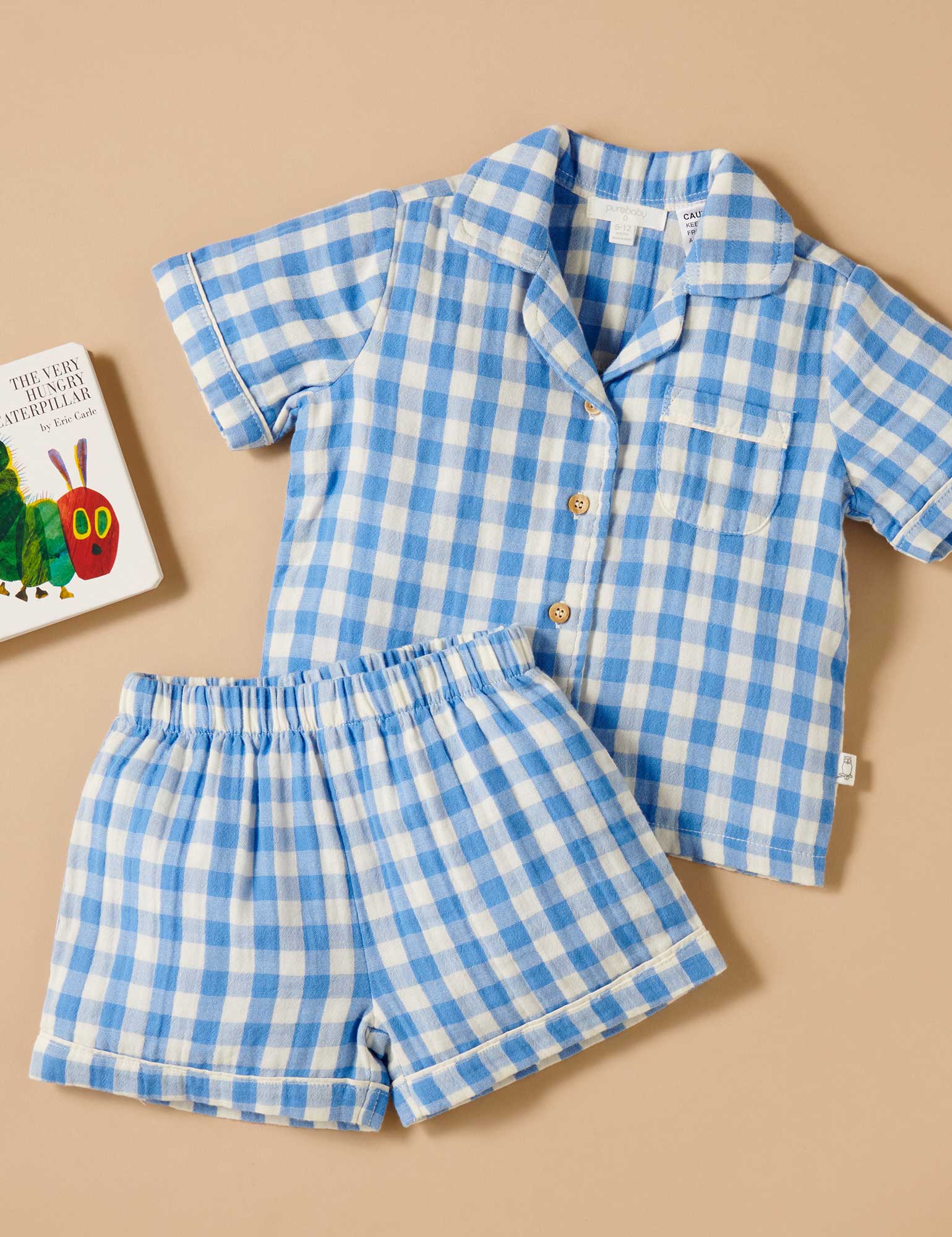Our Short Crinkle PJ Set makes dreamtime fun! Featuring a two piece top and short set in a classic gingham pattern. Made from 100% Organic Cotton muslin for a soft and breathable summer sleepwear option.