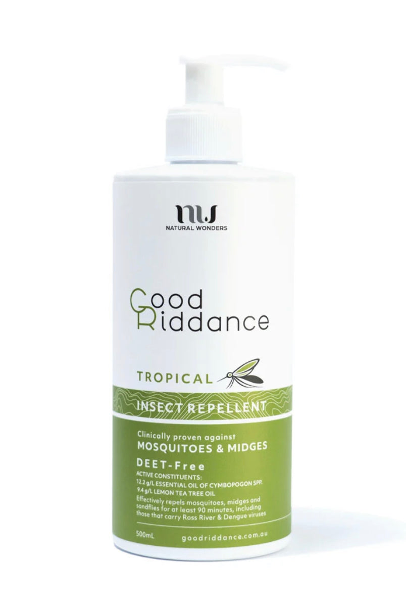Good Riddance Tropical Insect Repellent is an effective DEET-free bug repellent that uses natural essential oil actives to provide long lasting, clinically proven protection against mosquitoes, midges and sandflies.