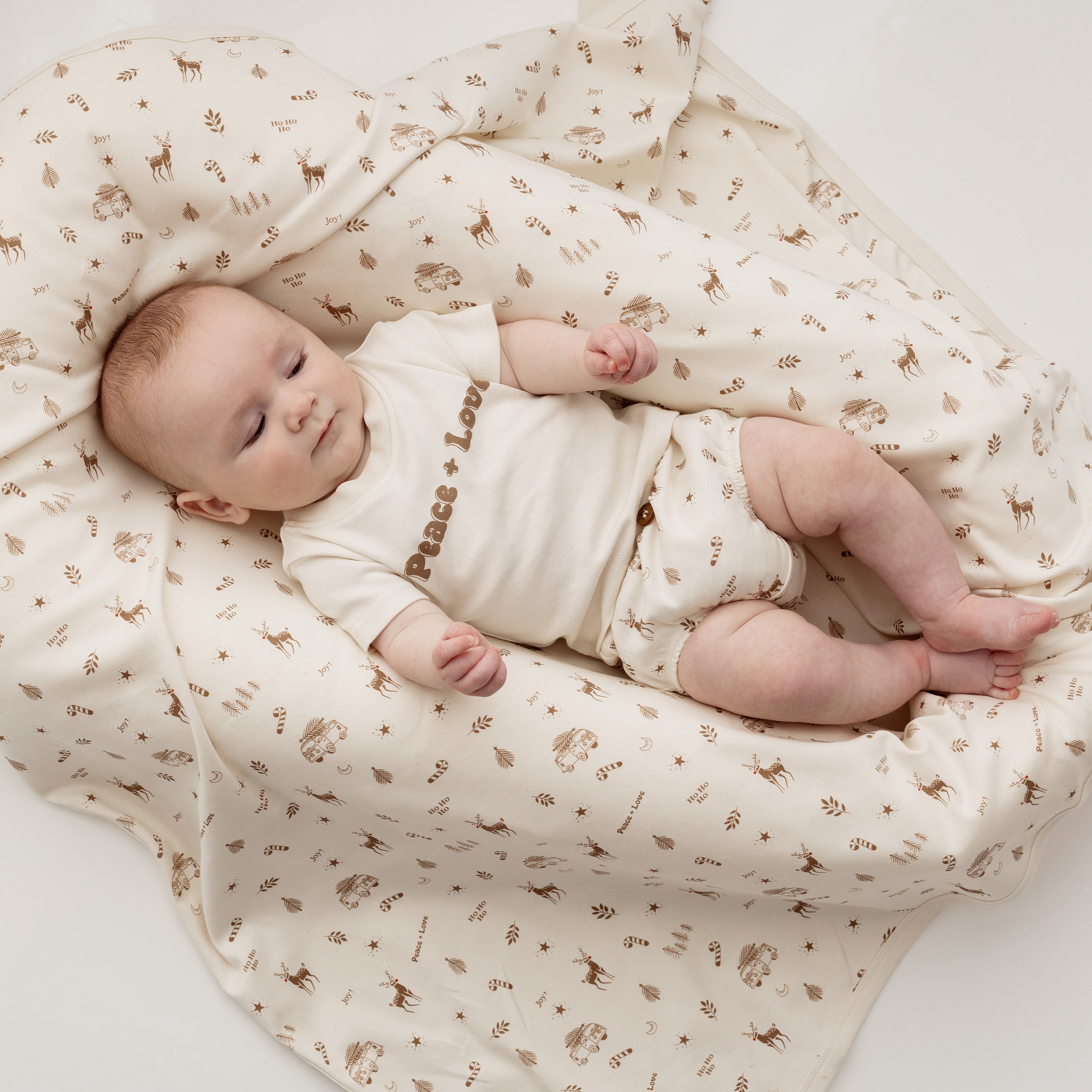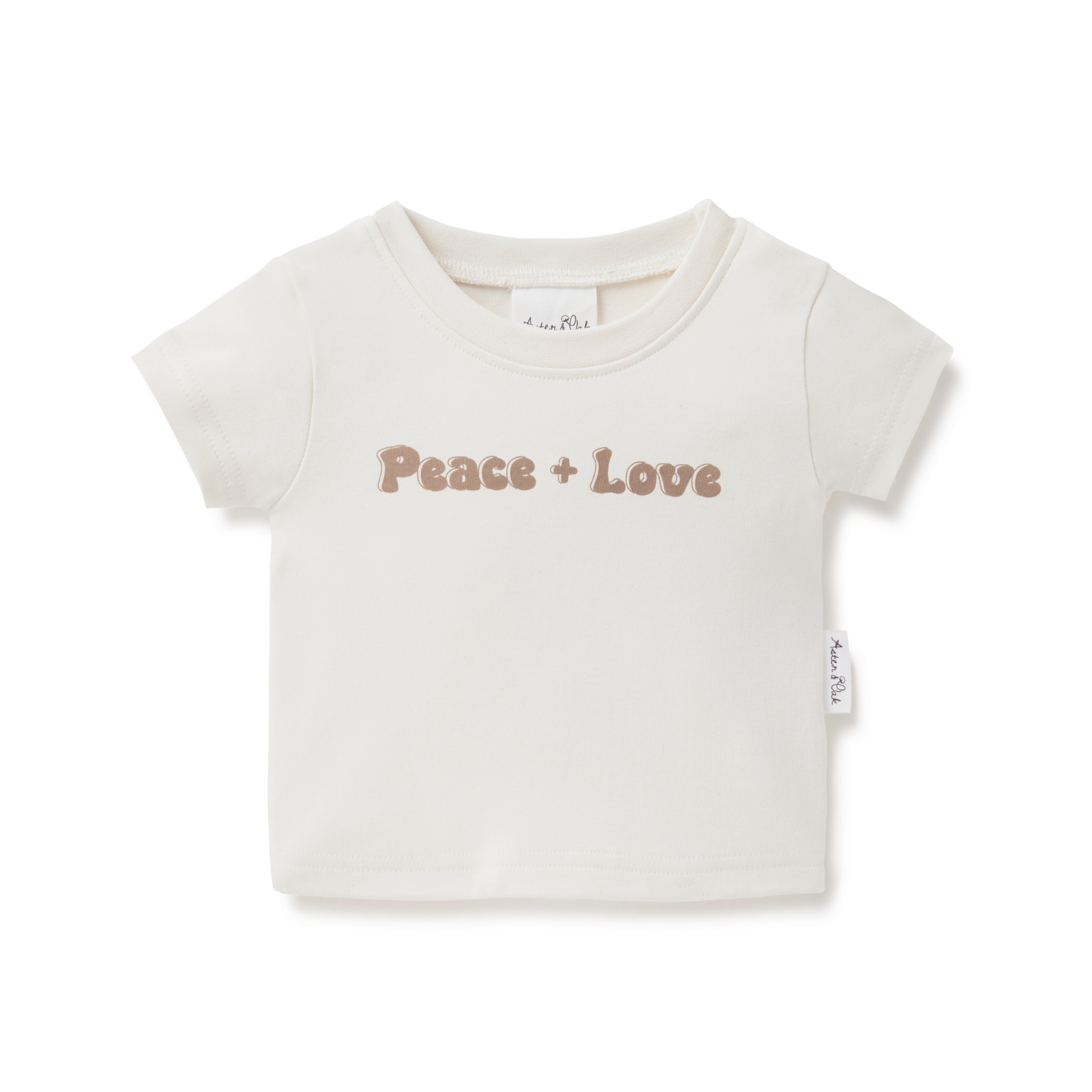 Our Peace and Love print tee is a must-have all-seasons layering piece for bubs wardrobe. Made in the softest organic cotton it can be layered under any of our styles and is the perfect wardrobe staple all year round. Get into the spirit early and pair with our new Happy Holiday harem shorts or bloomers!