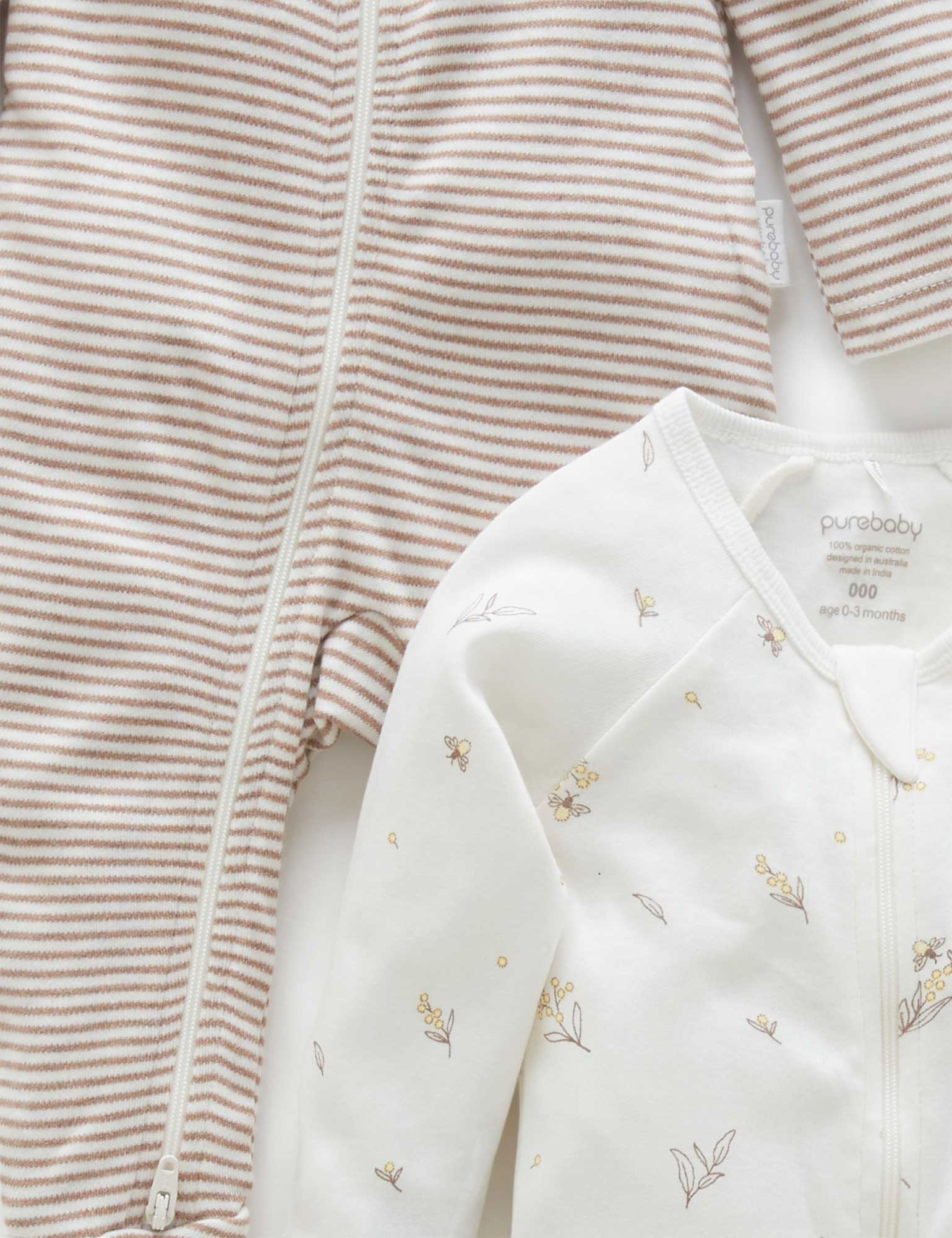 Our two pack Essentials Zip Growsuit designed for practicality and comfort. Featuring a full length double zip for the easiest of dressing. With long sleeves, inbuilt feet and optional turn-over mittens in sizes 0000-000, your newborn will be kept covered and warm. Made from the softest certified 100% Organic Cotton for a soft and gentle touch against your baby's delicate skin.