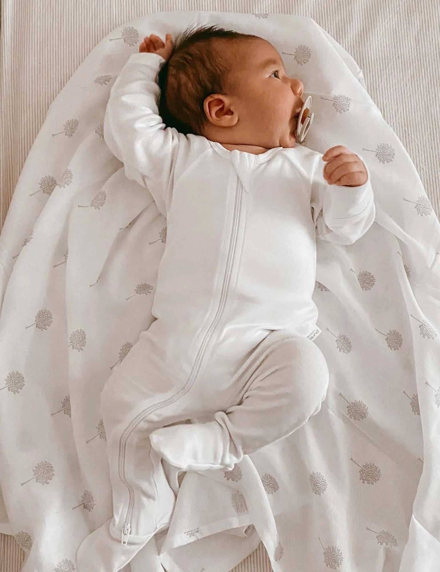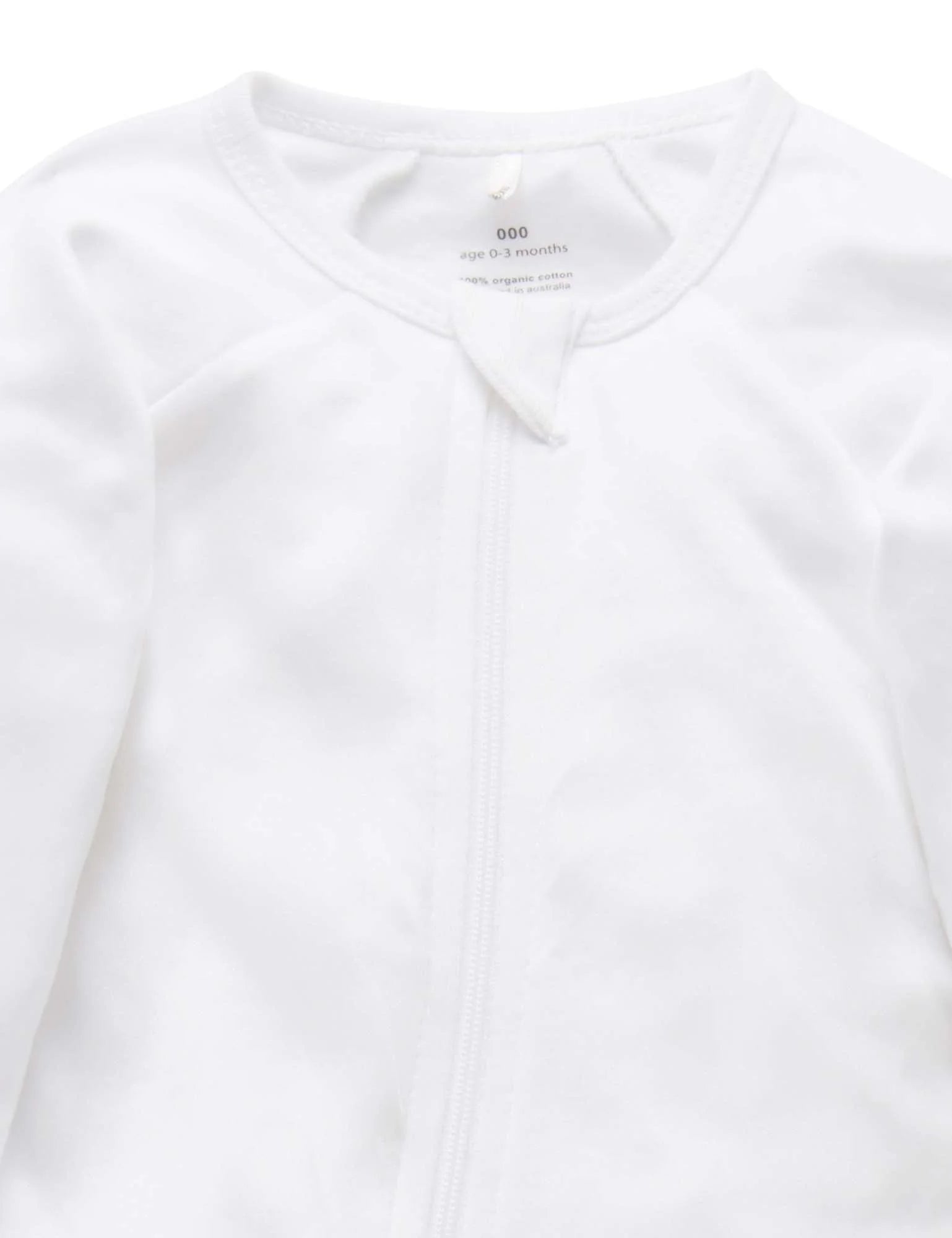 Our classic Essentials Zip Growsuit is a baby wardrobe staple style, designed for comfort and the easiest of dressing. Designed for day to night wear, our growsuits feature a two way zip with safety fold to protect their skin. With long sleeves, inbuilt feet and optional turn-over mittens in sizes 0000-000, your newborn will be kept covered and warm. Made from the softest certified 100% Organic Cotton for a soft and gentle touch against your baby's delicate skin.