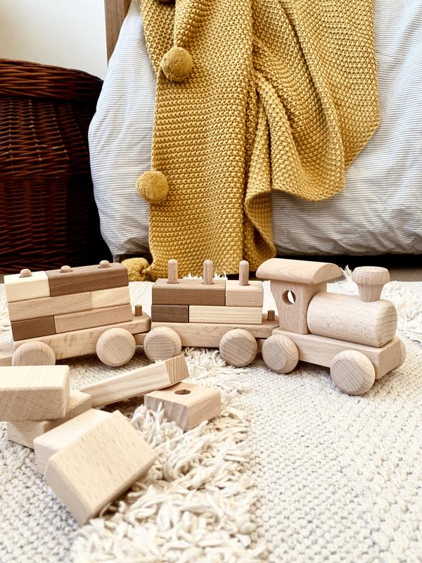 We love wooden toys and we get especially excited when we find one that's not only a great toy but that also has something special and educational included. These adorable wooden train sets from Jasio toys are lots of fun and allow children to learn while stacking all the different blocks onto the cargo carriages and seeing how they fit together. Another great way for children to practice their problem solving skills as they play.