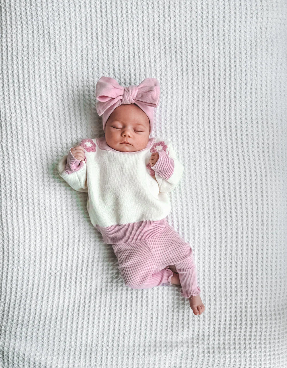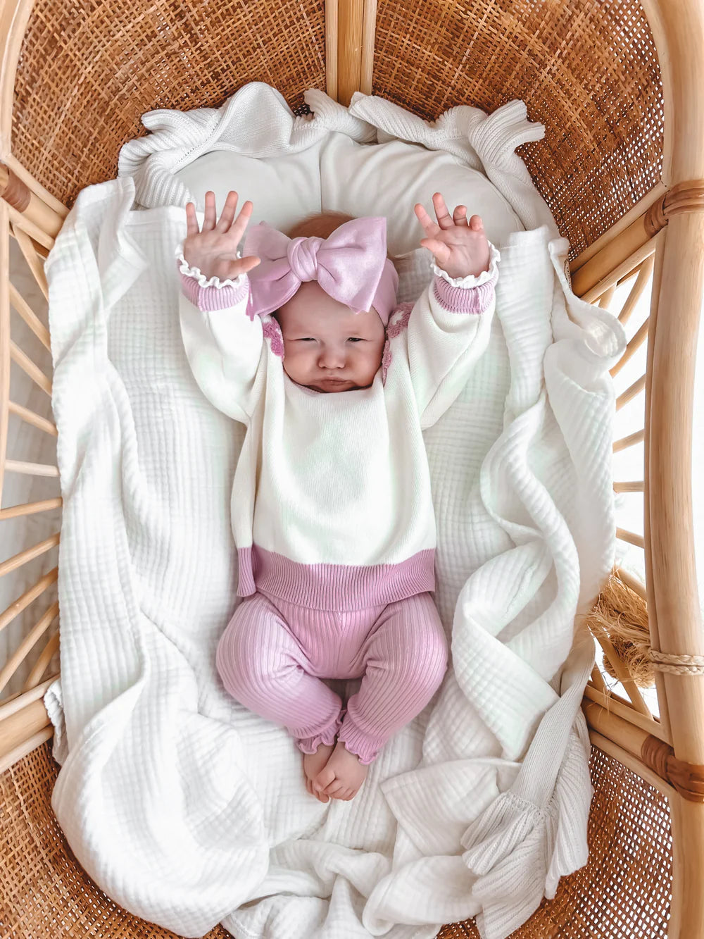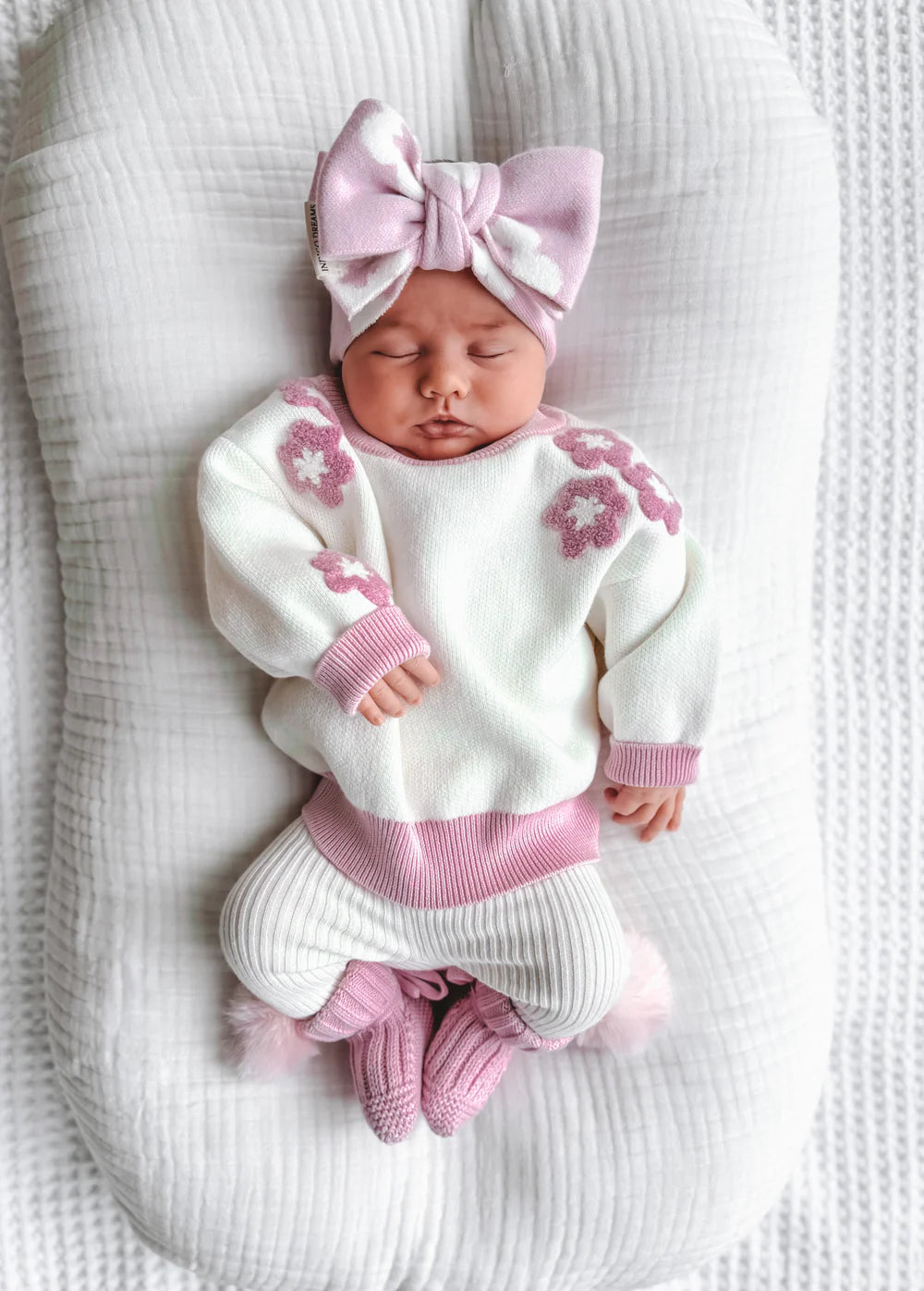 Our new boucle embroidered knit jumpers are super soft, cosy and made from 100% breathable cotton.