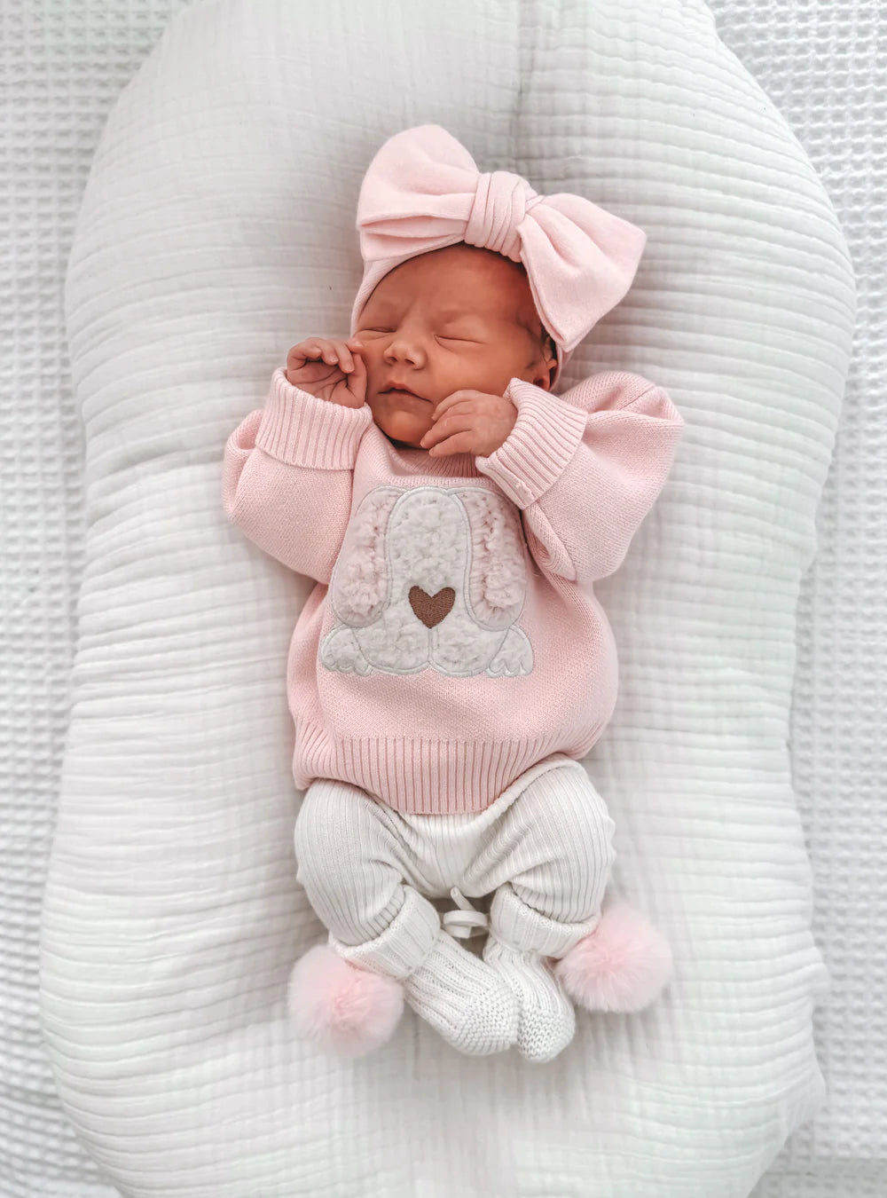 Our new sherpa puppy knit jumpers are super soft, cosy and made from 100% breathable cotton.