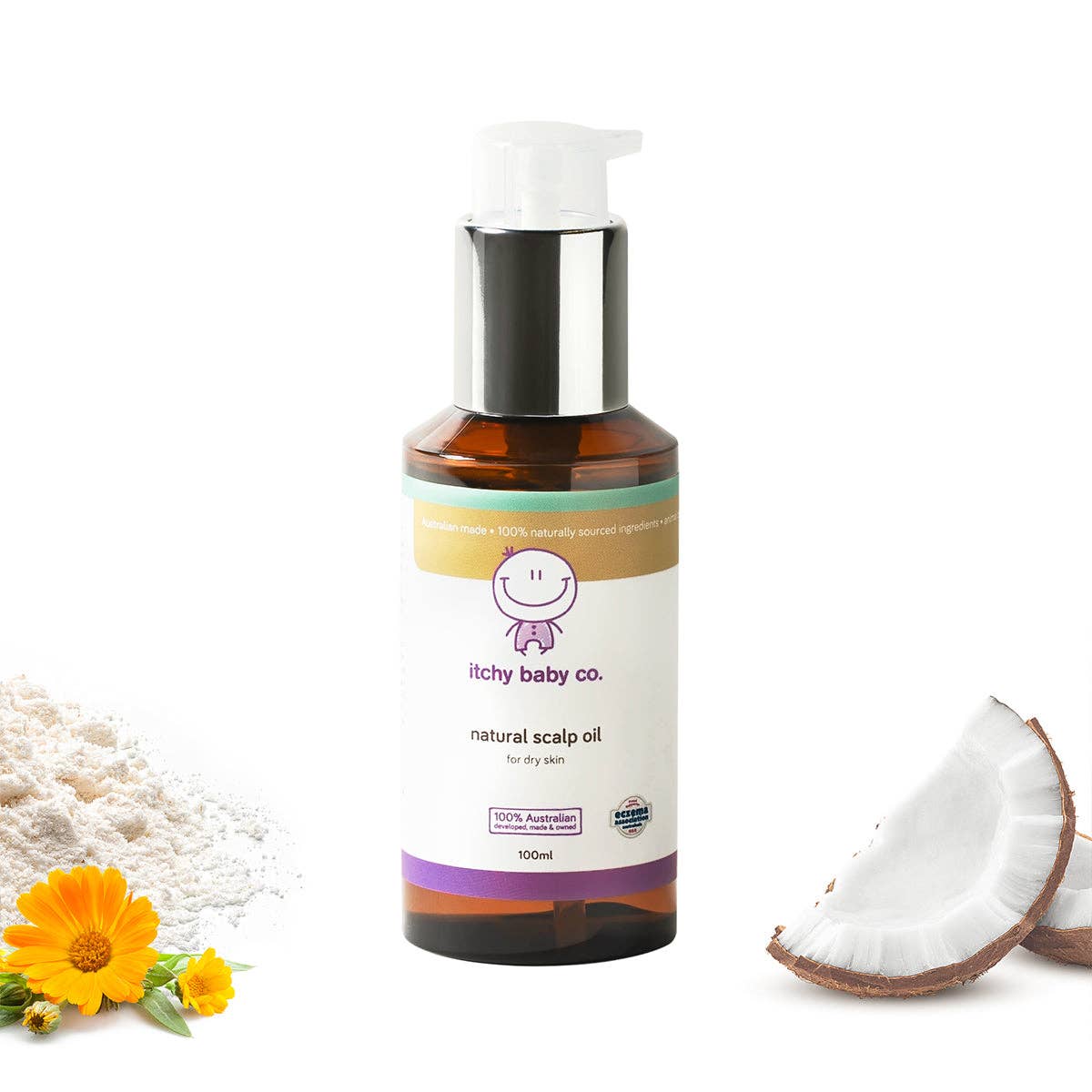 Our scalp oil formula is uniquely crafted with a blend of oat extract, coconut, and calendula oils. These all-natural ingredients work together to soften, soothe, and moisturise your baby's scalp, reducing flaking and alleviating the symptoms of cradle cap.
