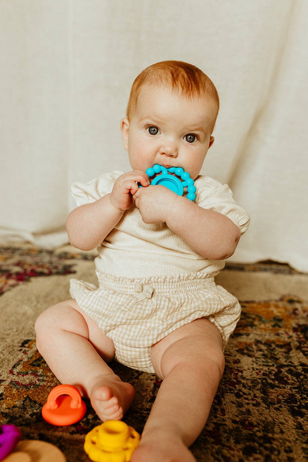 Like our Rainbow Stacker each piece comes apart and can stack in any order encouraging hand-eye coordination while being the perfect teether.