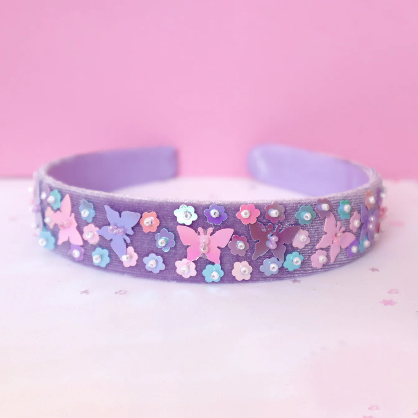 Purples, blues, lavenders, and misty tones combine in the Glitter & Magic Headband to take you on a journey of magical discoveries. Around every corner a mystery waiting to be solved and a spellbinding enchantment ready to burst into glitter and gems.