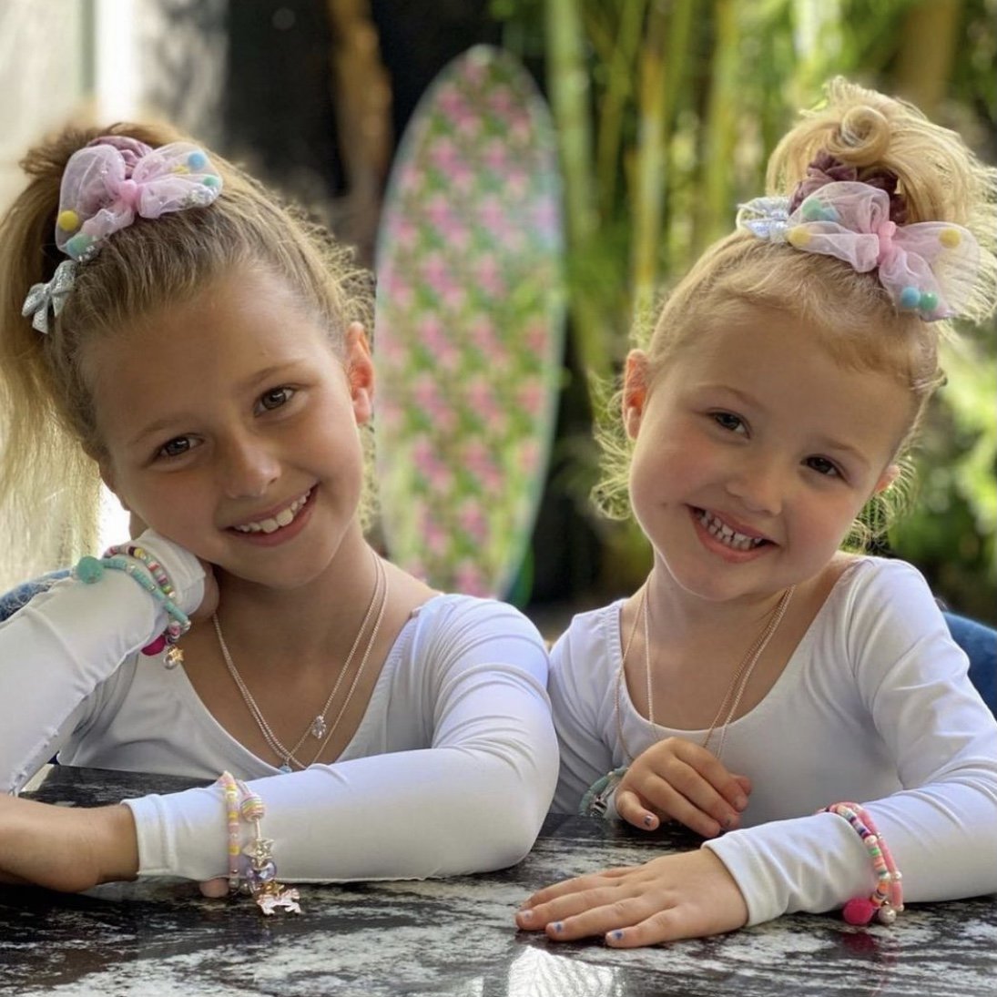 Shades of pink and purple are highlighted here with bright whites and pops of yellow, and beautifully accompanied by gold and pearl charms. The real showstopper of this carnival of colour, is the large pink pom pom, evoking a memory of fairy floss and sugar sweet dreams.