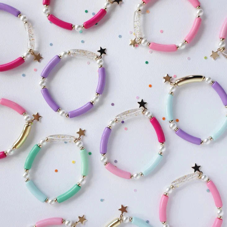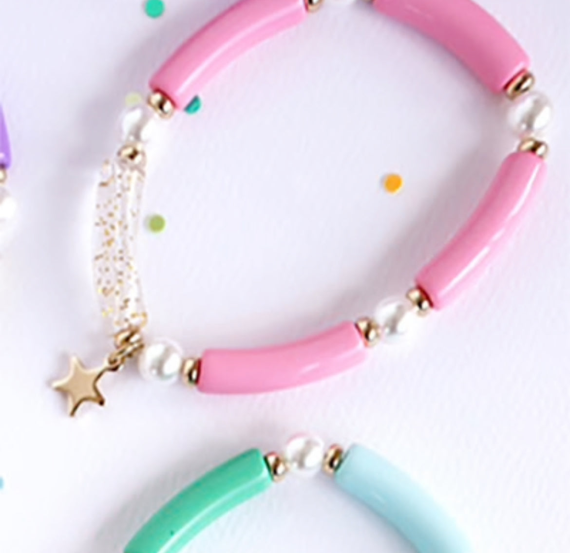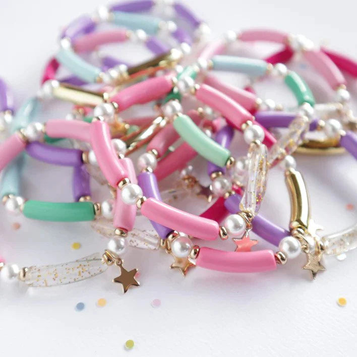 For lovers of fun and colour, the Love, Glitter & Magic Elastic Bracelet is the perfect accessory. This bright and colourful bracelet looks wonderful when worn in layers, and the more bracelets you add, the more beautiful it looks. This a stretchy elastic bracelet, so it is great for little ones who are still growing: the bracelet adjusts with them!
