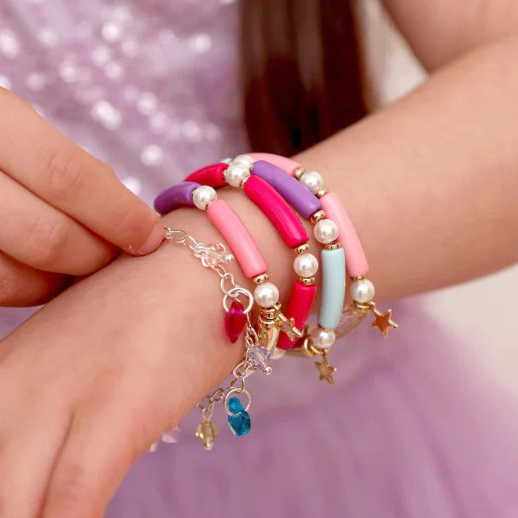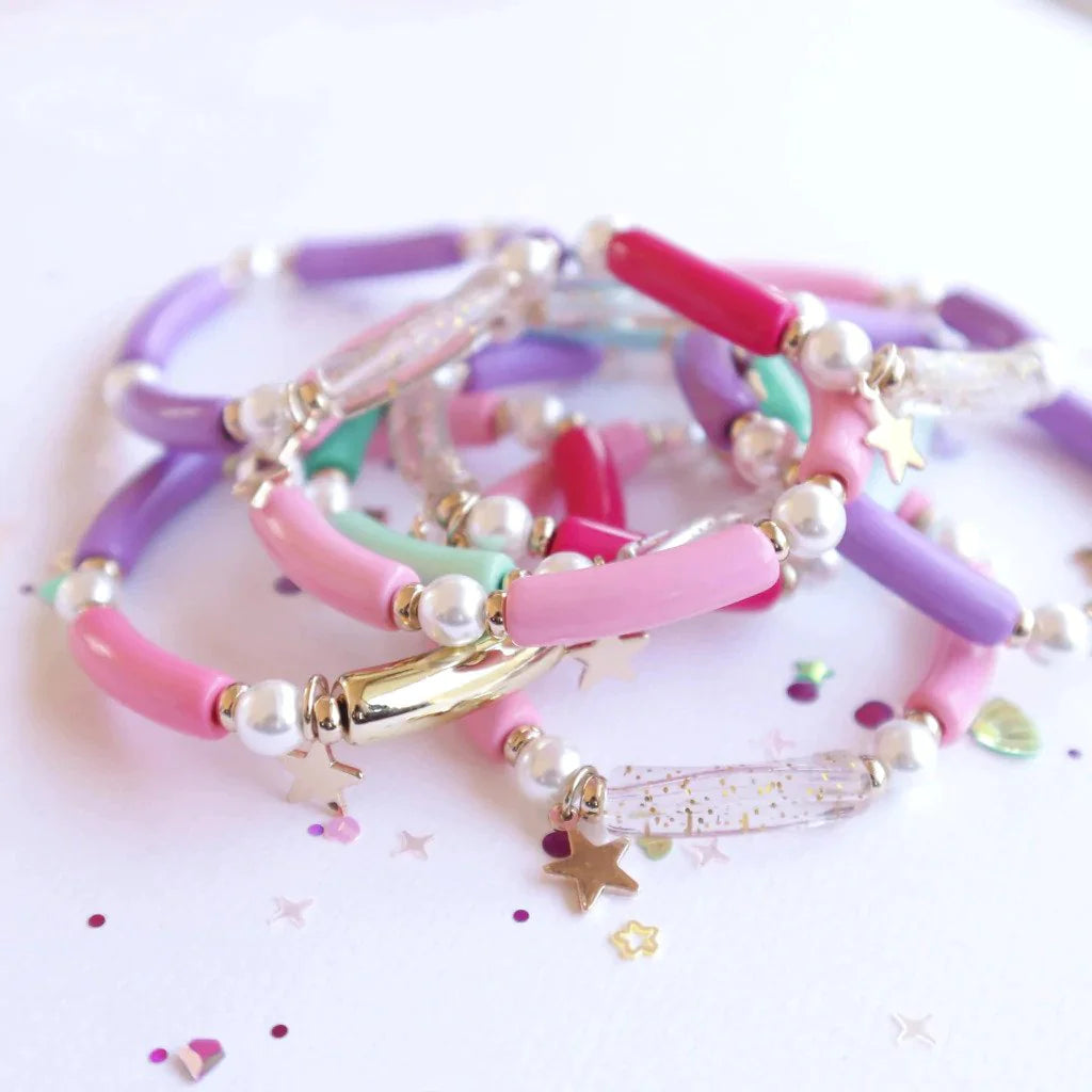 For lovers of fun and colour, the Love, Glitter & Magic Elastic Bracelet is the perfect accessory. This bright and colourful bracelet looks wonderful when worn in layers, and the more bracelets you add, the more beautiful it looks. This a stretchy elastic bracelet, so it is great for little ones who are still growing: the bracelet adjusts with them!