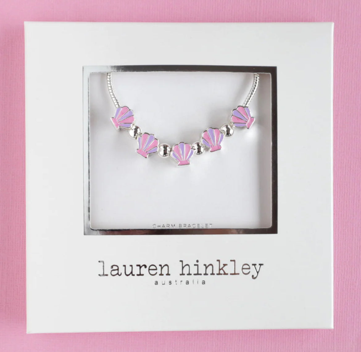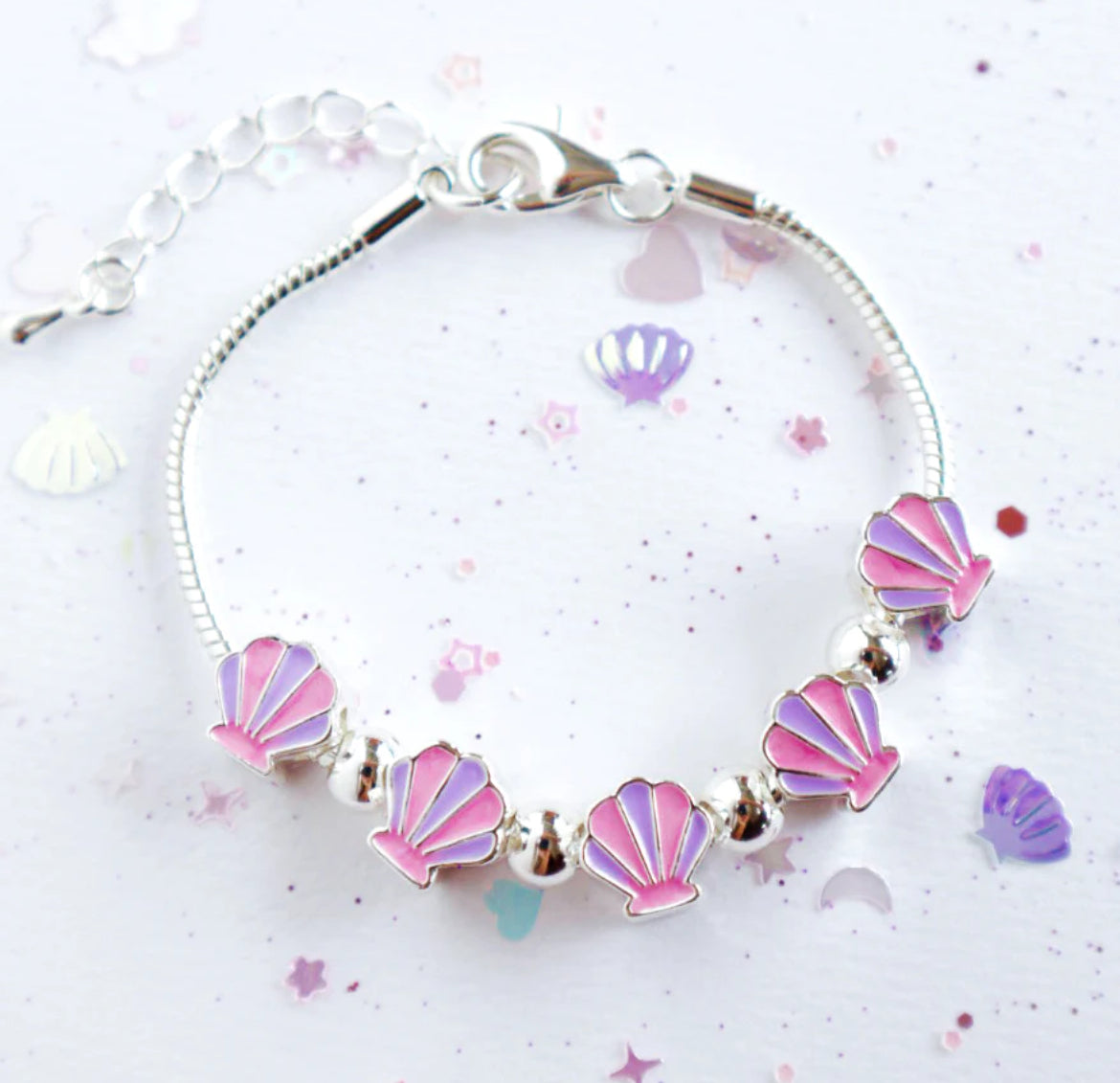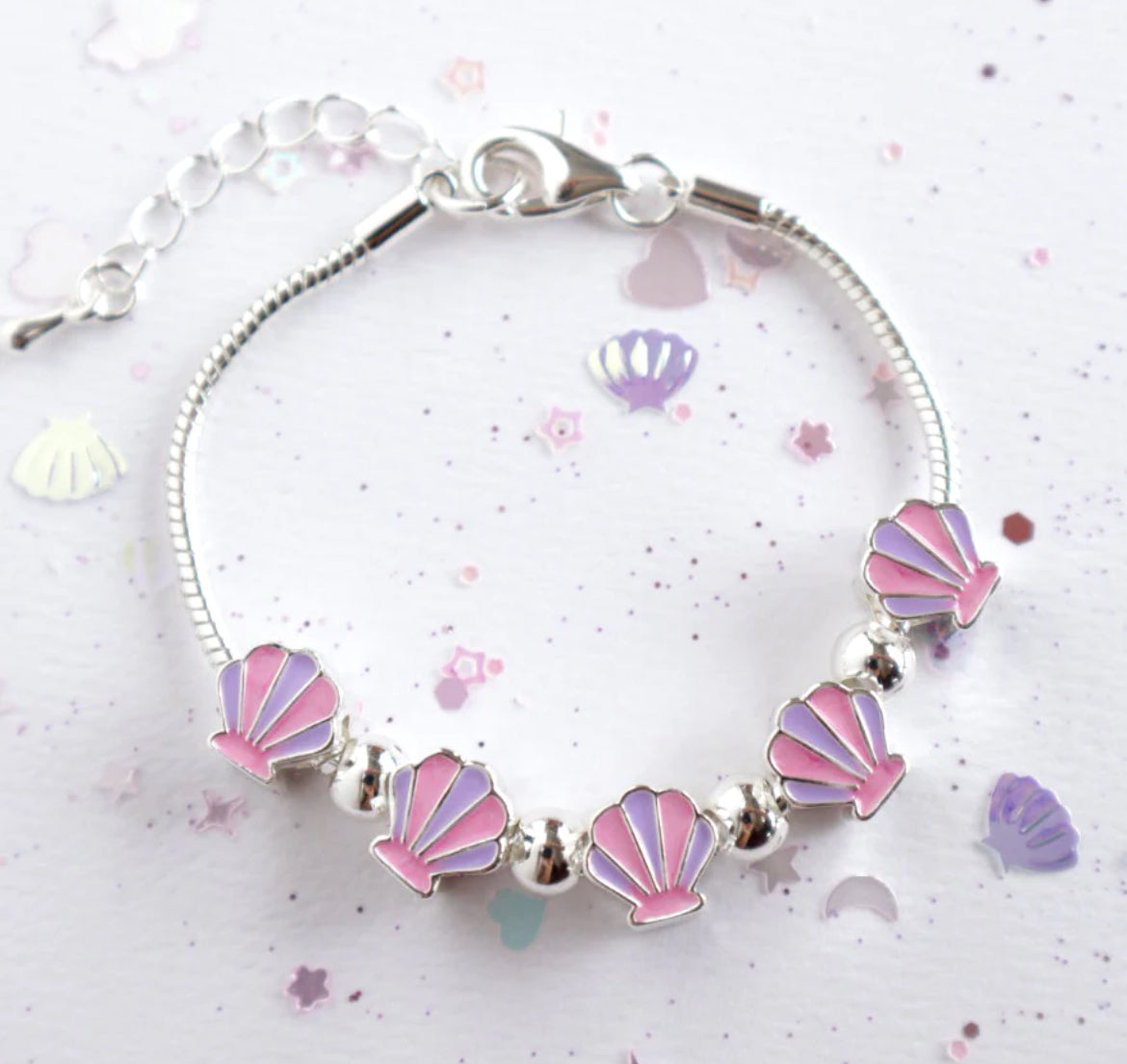 Shells are the decoration of the sea, where mermaids use them to create beautiful mosaics and patterns to embellish the wonders of the ocean. They also decorate themselves with these gorgeous shells, each one carefully chosen to match a mermaid’s personality. The Ocean Treasure Charm Bracelet features bold pink and purple colours for a spirited little one who loves to play and let’s their imagination swim with the mermaids.