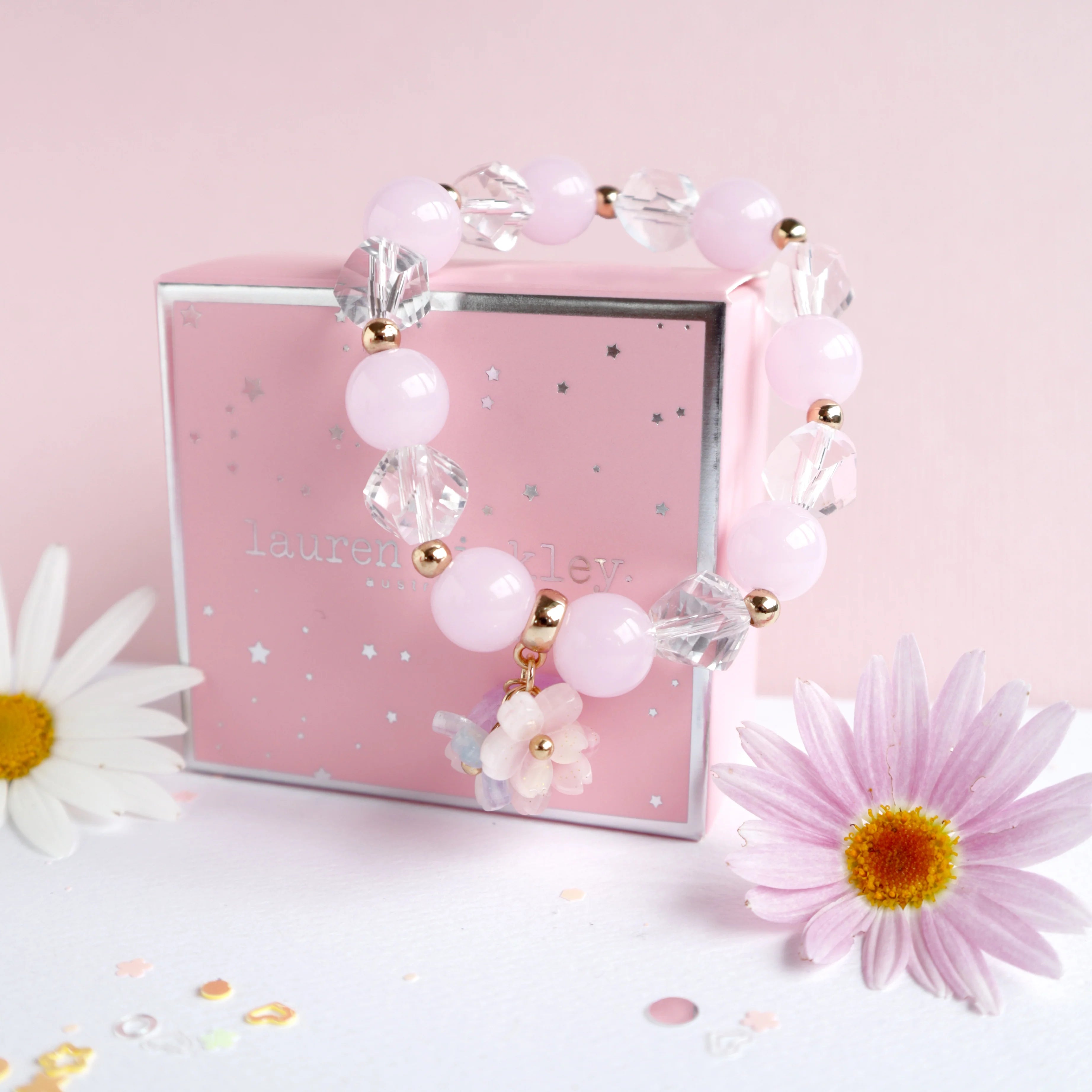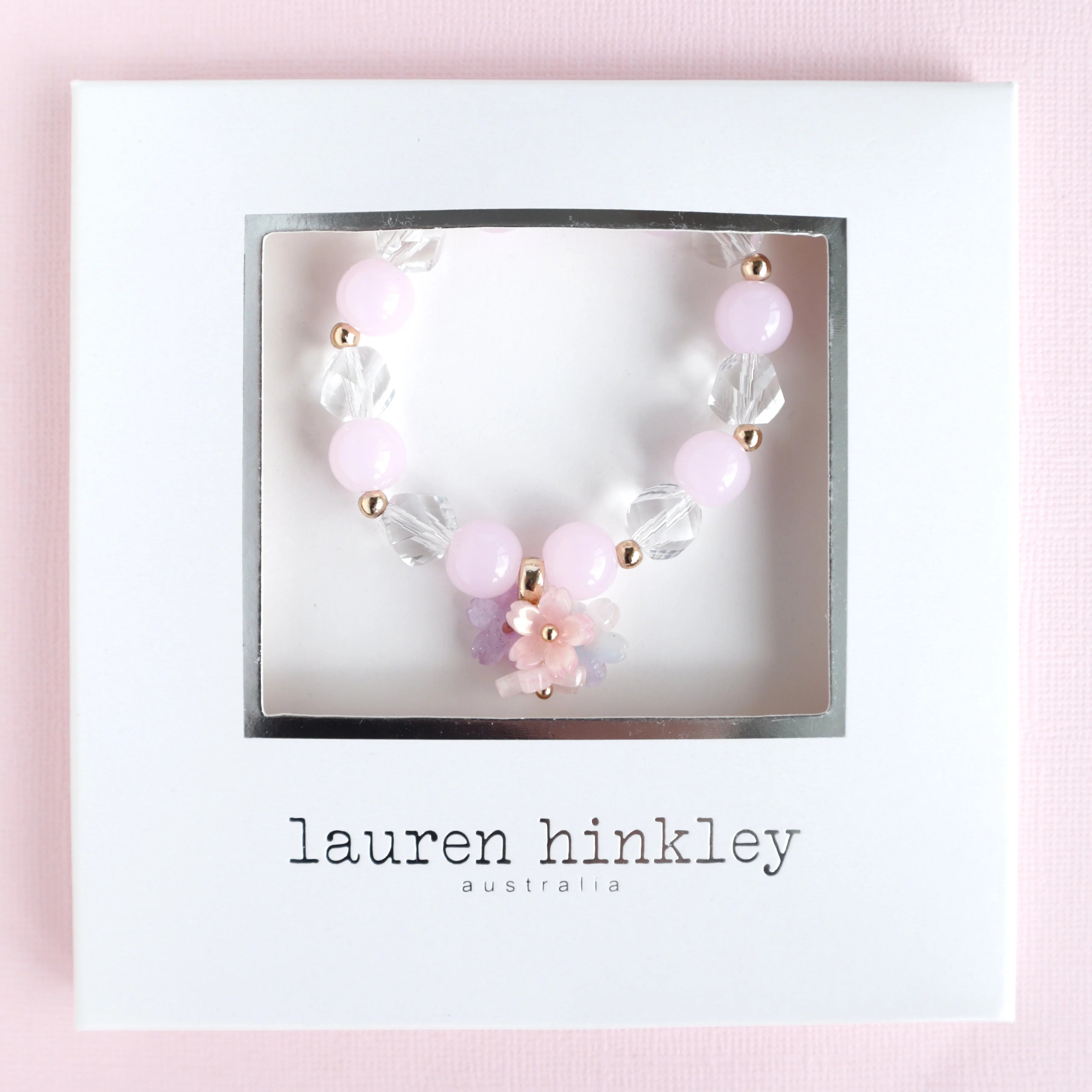 Flowers take on a whole other life in the Pretty Posy Elastic Bracelet. Nestled among and endless string of crystal and pale pink beads, the posy charm features several flowers of different shades of pink verging on lavender. Playful, affectionate, soft, and lovely, every shade of colour gives a feeling of fun and happiness.