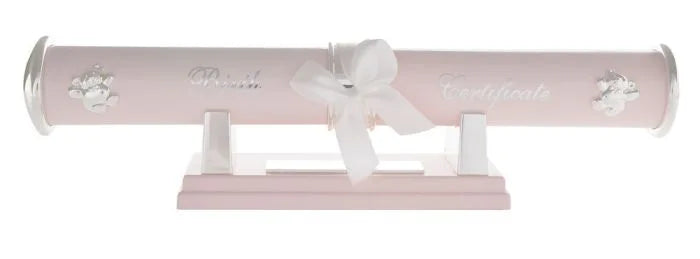 Preserve one of life’s most precious documents with this elegant Birth Certificate Holder – Pink Designed in a soft pastel pink with delicate detailing and finished with a ribbon tie, it’s a timeless way to store and protect baby’s birth certificate.