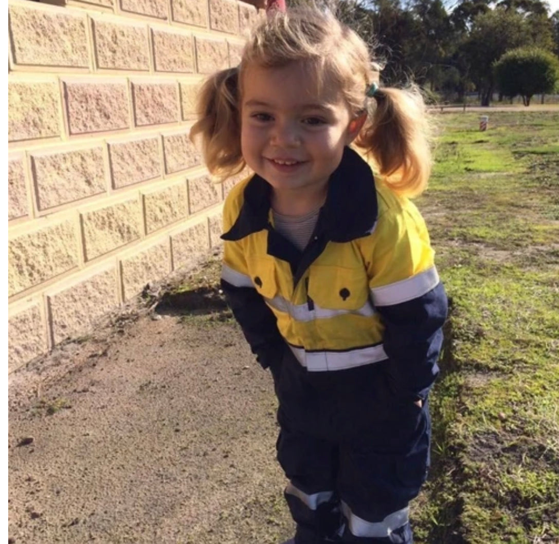 A pair of Aussie Kids at Work Hi-vis baby overalls will get your little Aussie into their very own work wear. Let them become part of your working world. Kids love to emulate their everyday heroes, whether its mum, dad, grandparents or just a special person in their lives. It's a great way to create an even stronger bond with your little one. The safety aspect of all our hi-vis wear is paramount to keeping our best future resources safe and visible.