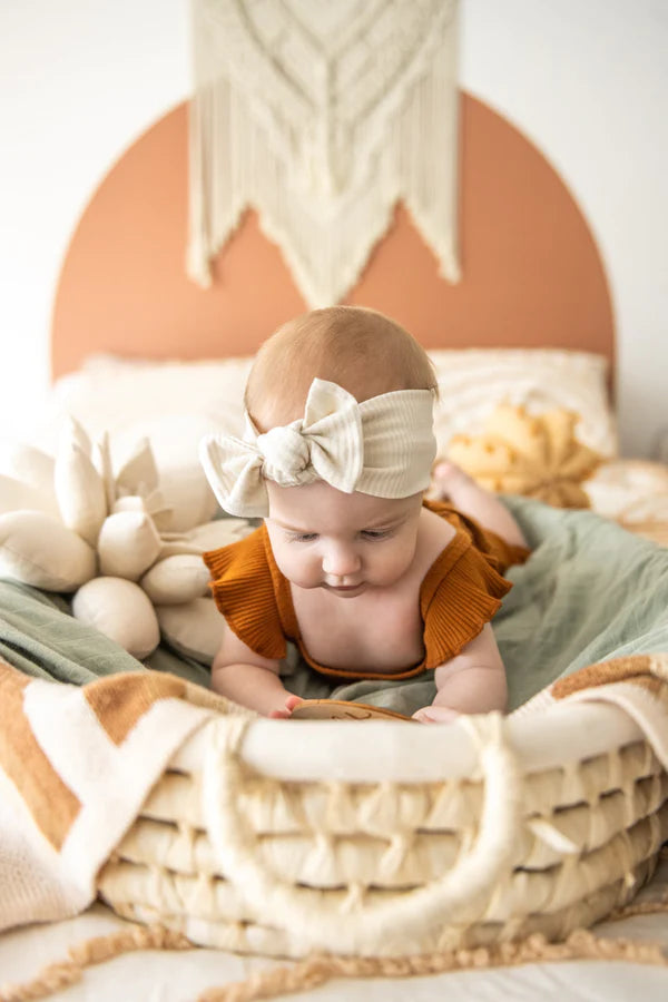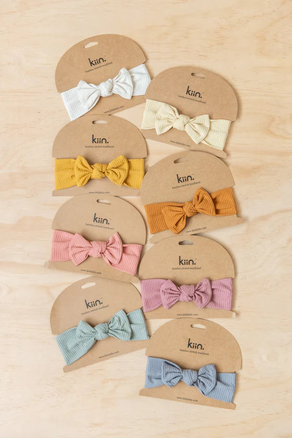 Kiin stretch bow headbands are designed with comfort in mind; made from the most luxuriously soft bamboo fabric, in a trendy ribbed texture. The fabric is incredibly soft, and super stretchy. With a removable bow, this also doubles as a plain headband. Perfect for newborns, infants & toddlers. Available in 8 signature Kiin colours.