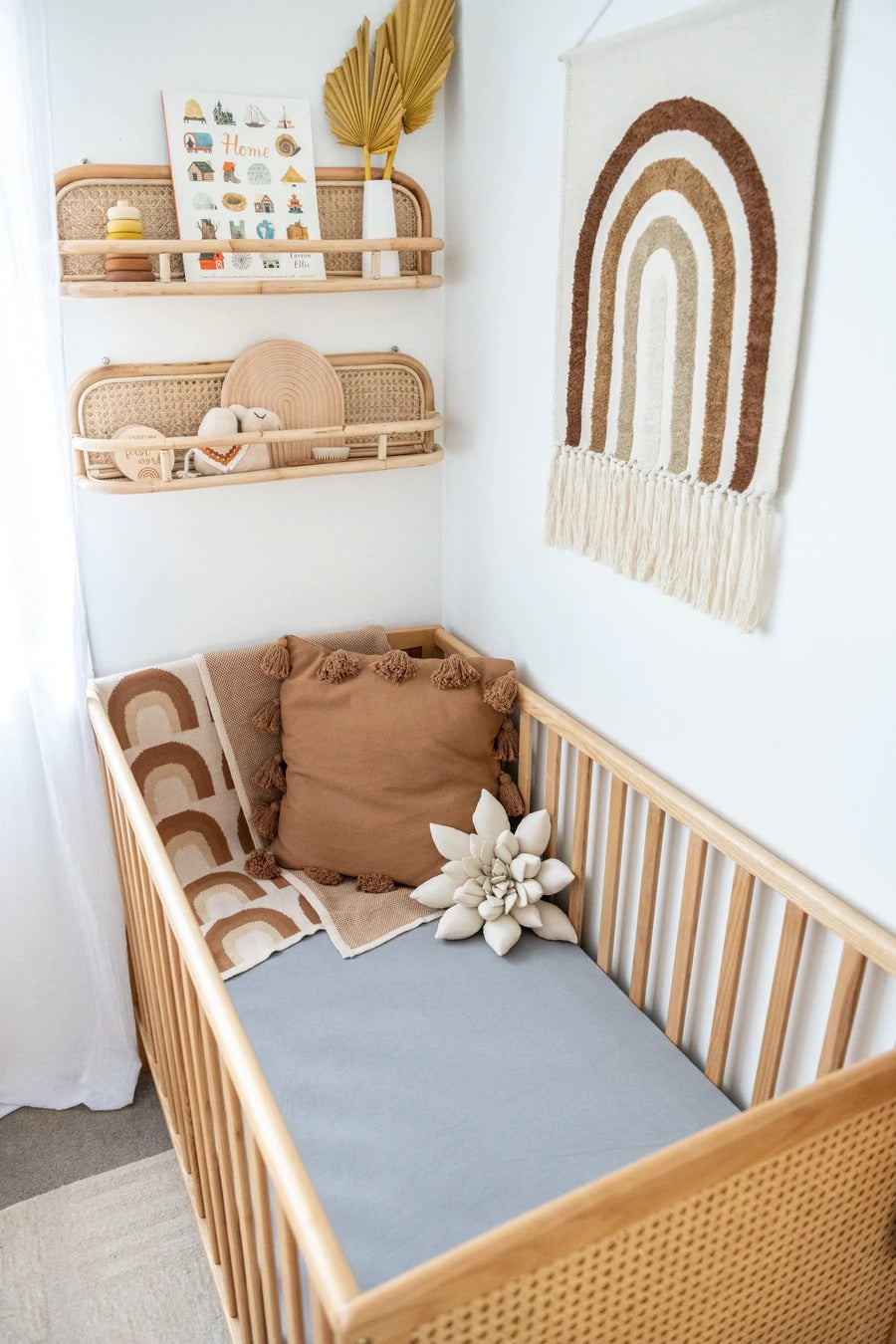 Kiin fitted sheets are made from the softest organic cotton + bamboo blend. They are the ideally soft and gentle against delicate skin, laying smoothly beneath your little one; even through tosses and turns. Kiin fitted sheets are breathable & ideal for all seasons and temperatures.