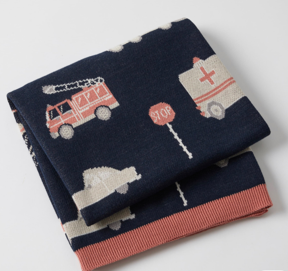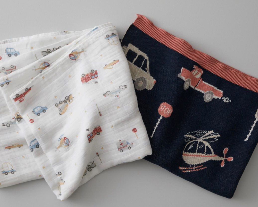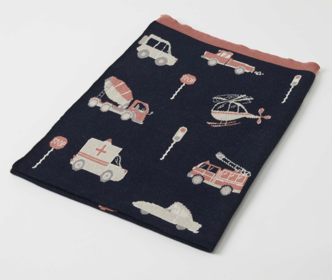 The Transport Baby Blanket is luxuriously soft and perfect for using in the cot or pram on colder days. This jacquard blanket is a quality knit made from 100% cotton and features brightly coloured shaped vehicles, wheels, and decorative motifs that are sure to bring a smile to any child’s face. Comes in a beautiful belly wrap.