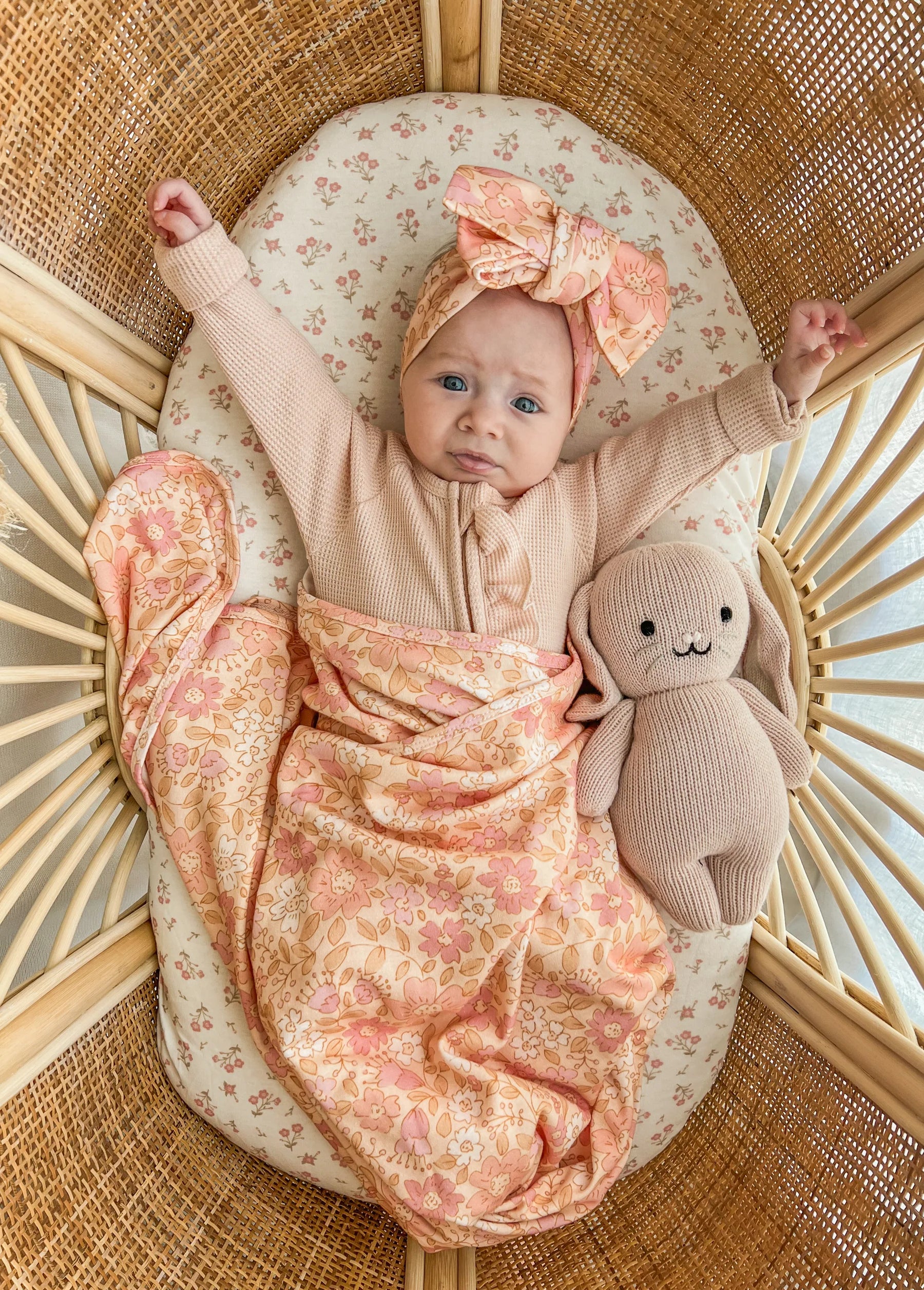 Introducing our newest design, Goldie Floral. Featuring a beautiful floral design on a snuggly golden cotton jersey fabric. They make the perfect addition to your swaddle stash.
