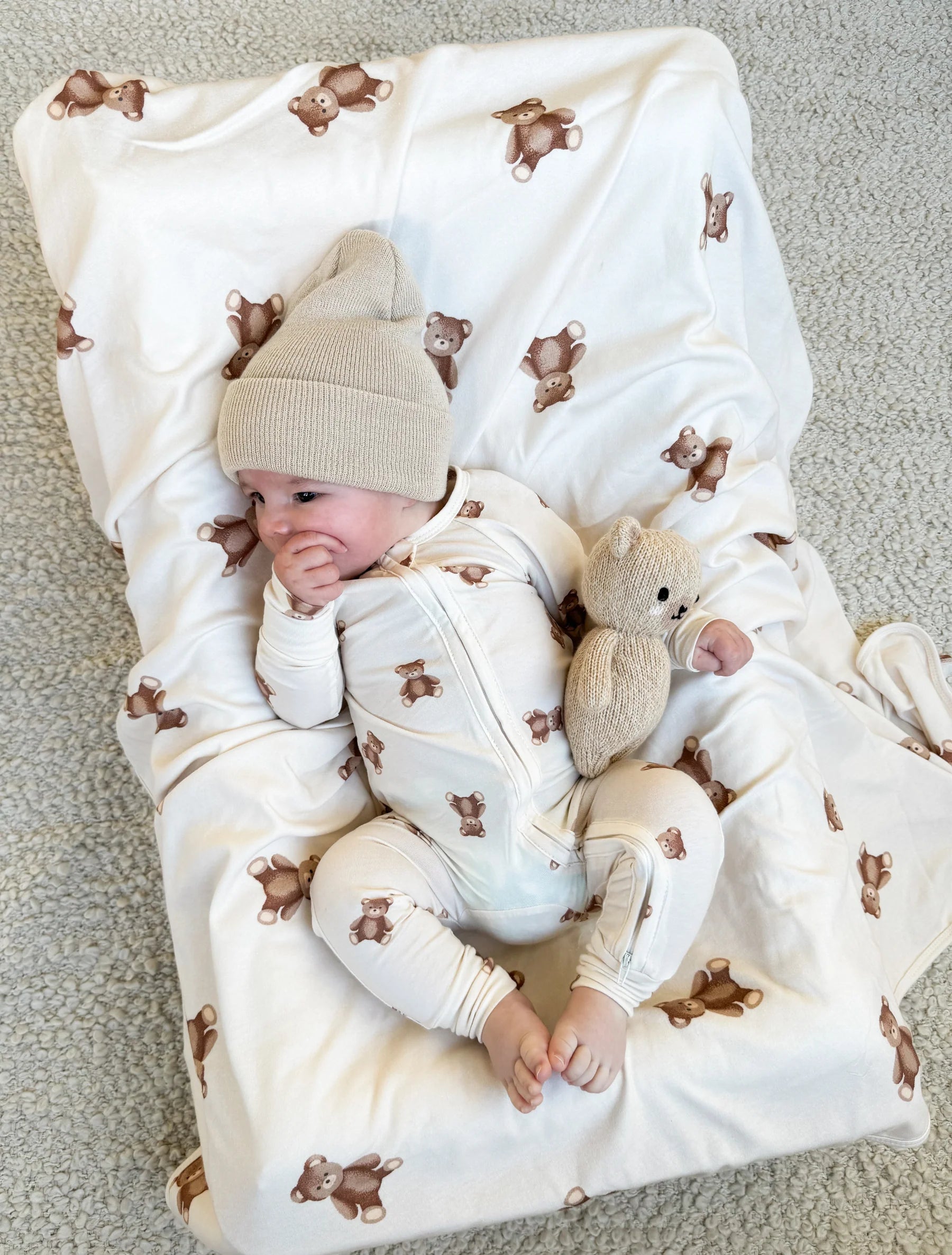 Our newest print, Teddies is a neutral Mama's dream. The perfect gender neutral outfit for little boys and girls.