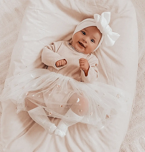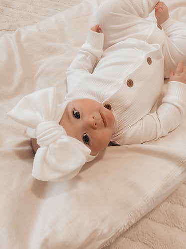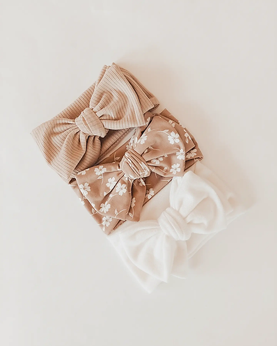 This headband can be tied again to suit your babies head size but all material used has plenty of stretch, they will be sent out pre tied ready to go as well.