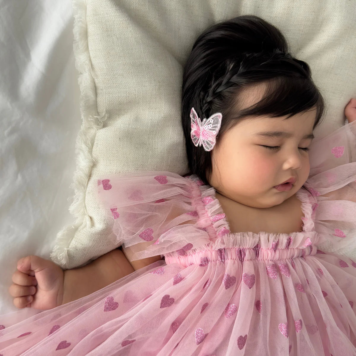 Our pigtail set includes two mini pinwheel bows on clips (one left-side clip and one right-side clip)