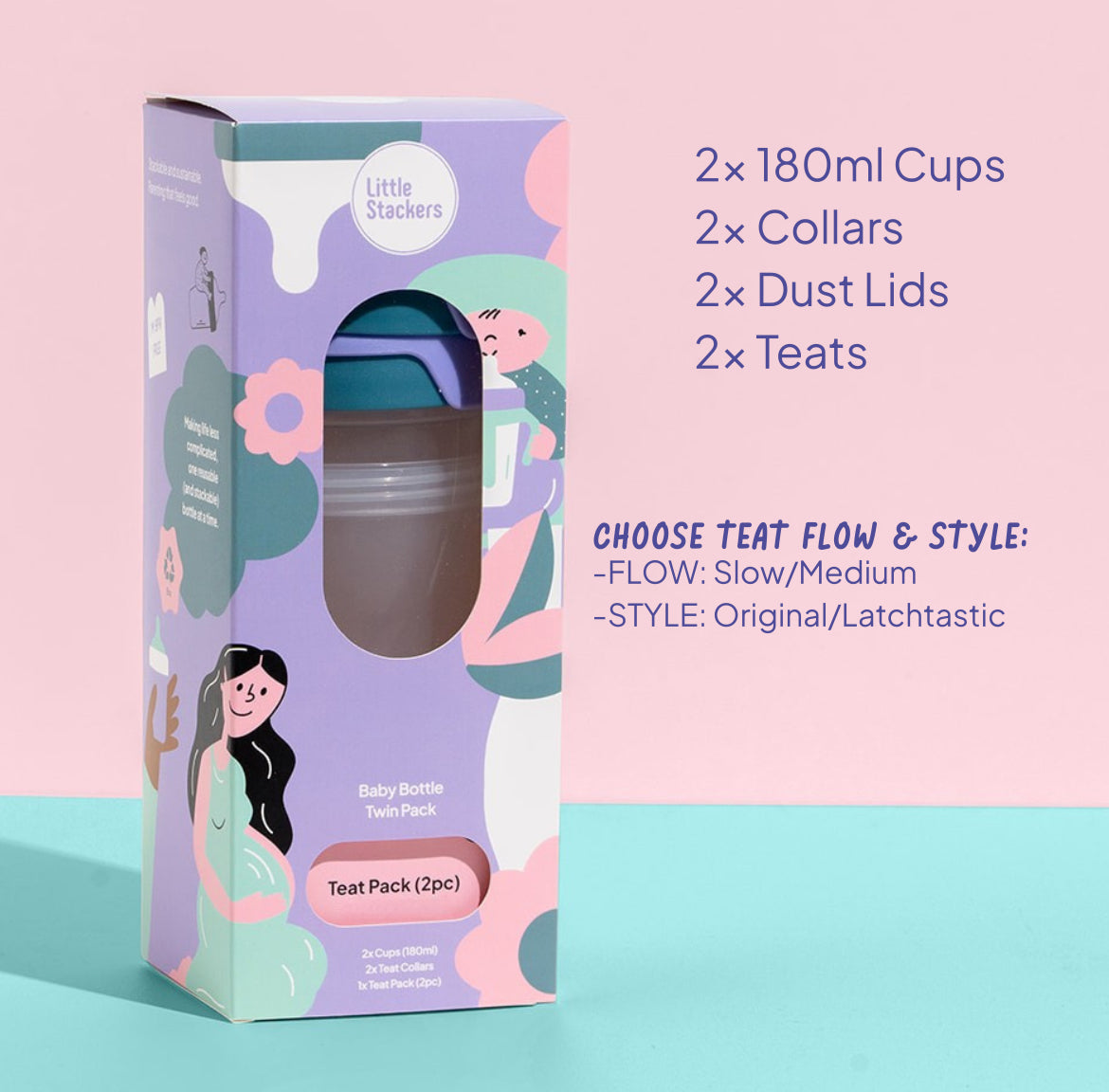 With your choice of teat shape and flow plus a super stackable base, these bottles aren’t just bottles — they’re your new best friends for nourishing bub while keeping life organised.