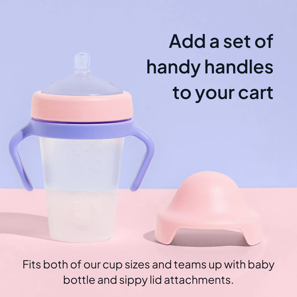 Featuring a breast-like teat and a super stackable base, they're the dynamic duo to keep your bub happy and your home organized. They seamlessly transition from bottle to sippy cup with ease – just swap out the lid and voilà! Don't forget to add some handy handles for those moments when bub is feeling independent.
