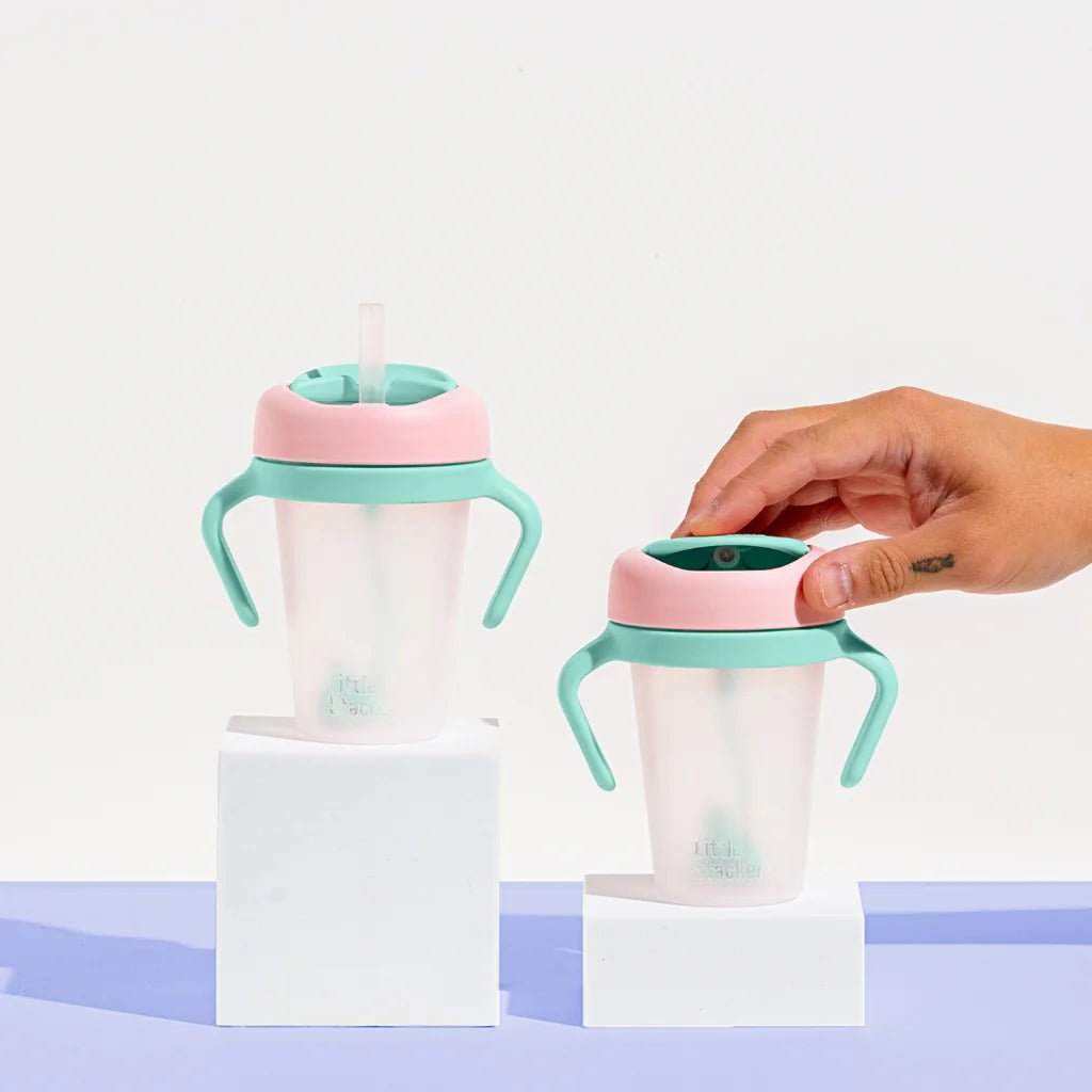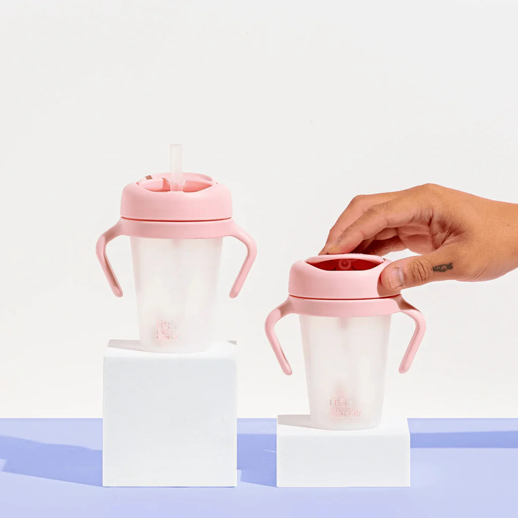 Introducing our beloved Little Stackers sippy cups! These cups aren't just cups; they're the secret weapon for keeping your kitchen as tidy as a Pinterest board. With their cup-shaped bases that stack neatly inside each other, bid farewell to clutter and welcome sleek organization!