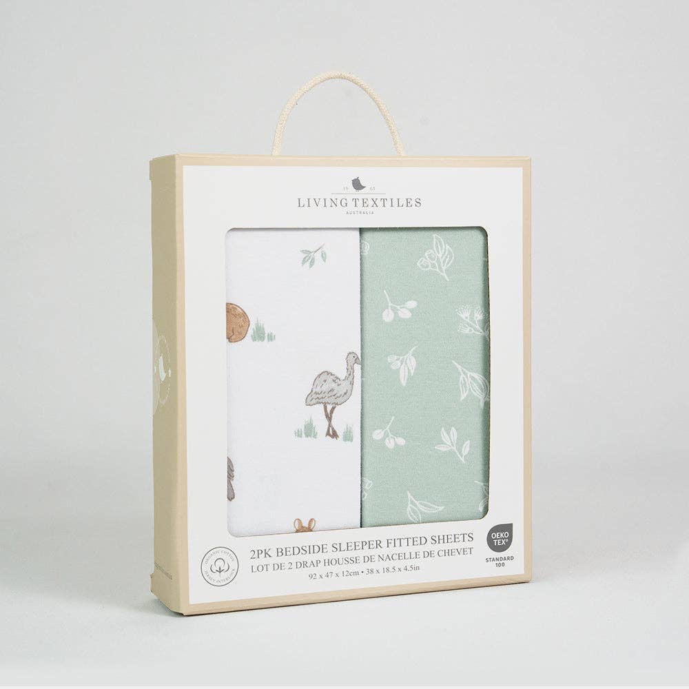 2 Pack Organic Bedside Sleeper Fitted Sheet - Australiana