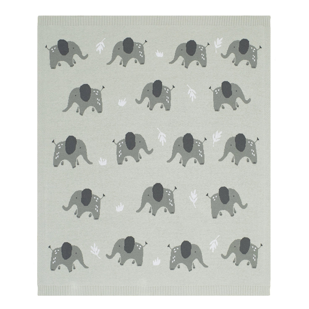 Keep baby warm and cosy when out and about with this super soft 100% cotton knit whimsical elephant baby blanket. Perfectly sized for the pram or bassinet, this lightweight blanket will add a dose of style to an adventure. Presented in a gorgeous gift box, it also makes the perfect gift.