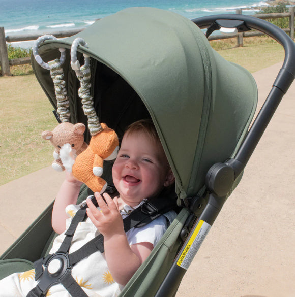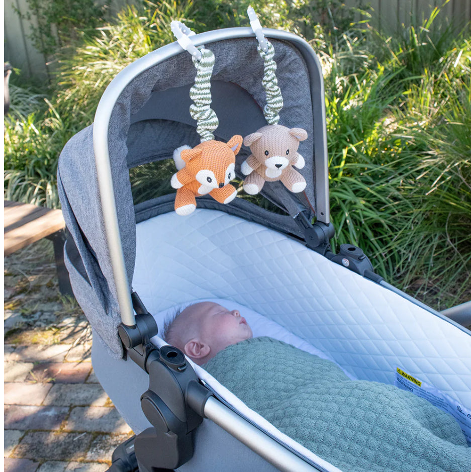 Keep baby entertained when out and about with our sweet bear and fox stroller toys.