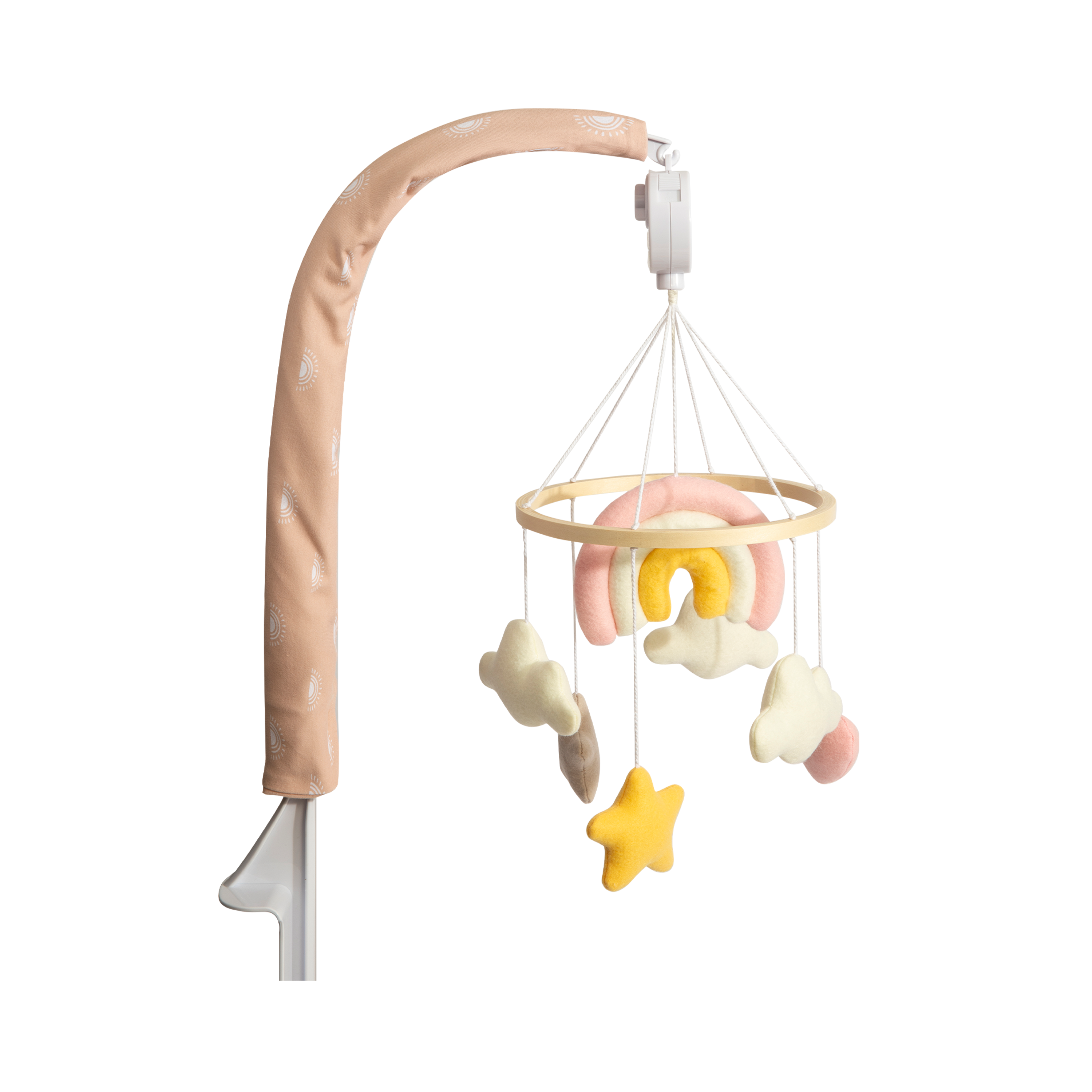 Little ones are going to love watching this farm scene gently rotate overhead to Brahms lullaby as they drift off to sleep. This gorgeous musical cot mobile features exquisite detailing and is the perfect finishing touch to your nursery.
