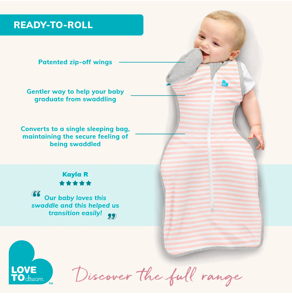 - Gentler way to help your baby graduate from swaddling